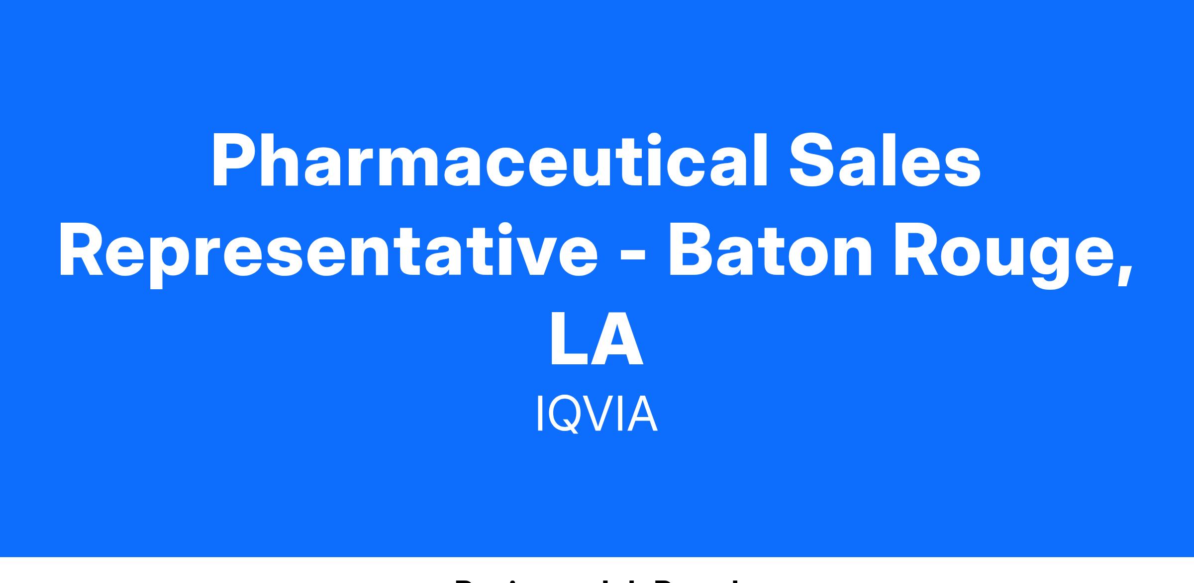 Pharmaceutical Sales Representative - Baton Rouge, LA