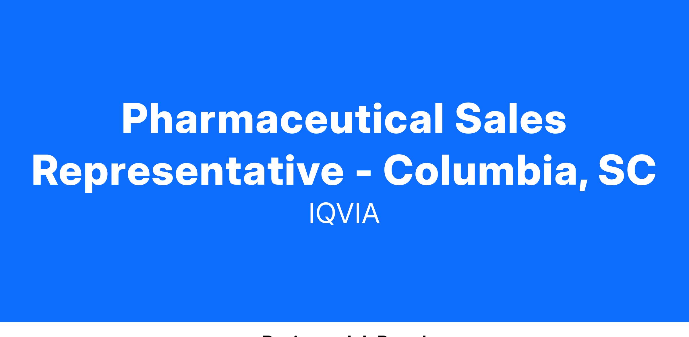 Pharmaceutical Sales Representative - Columbia, SC