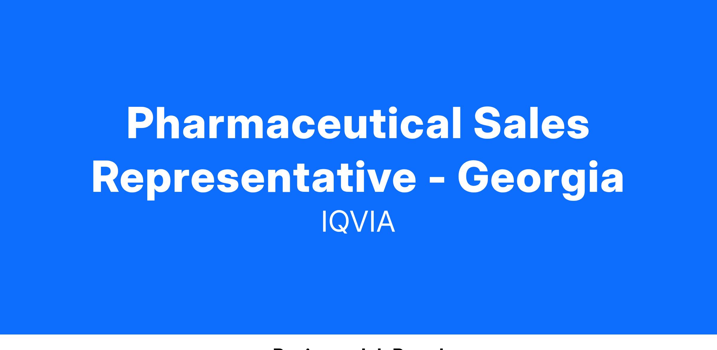 Pharmaceutical Sales Representative - Georgia