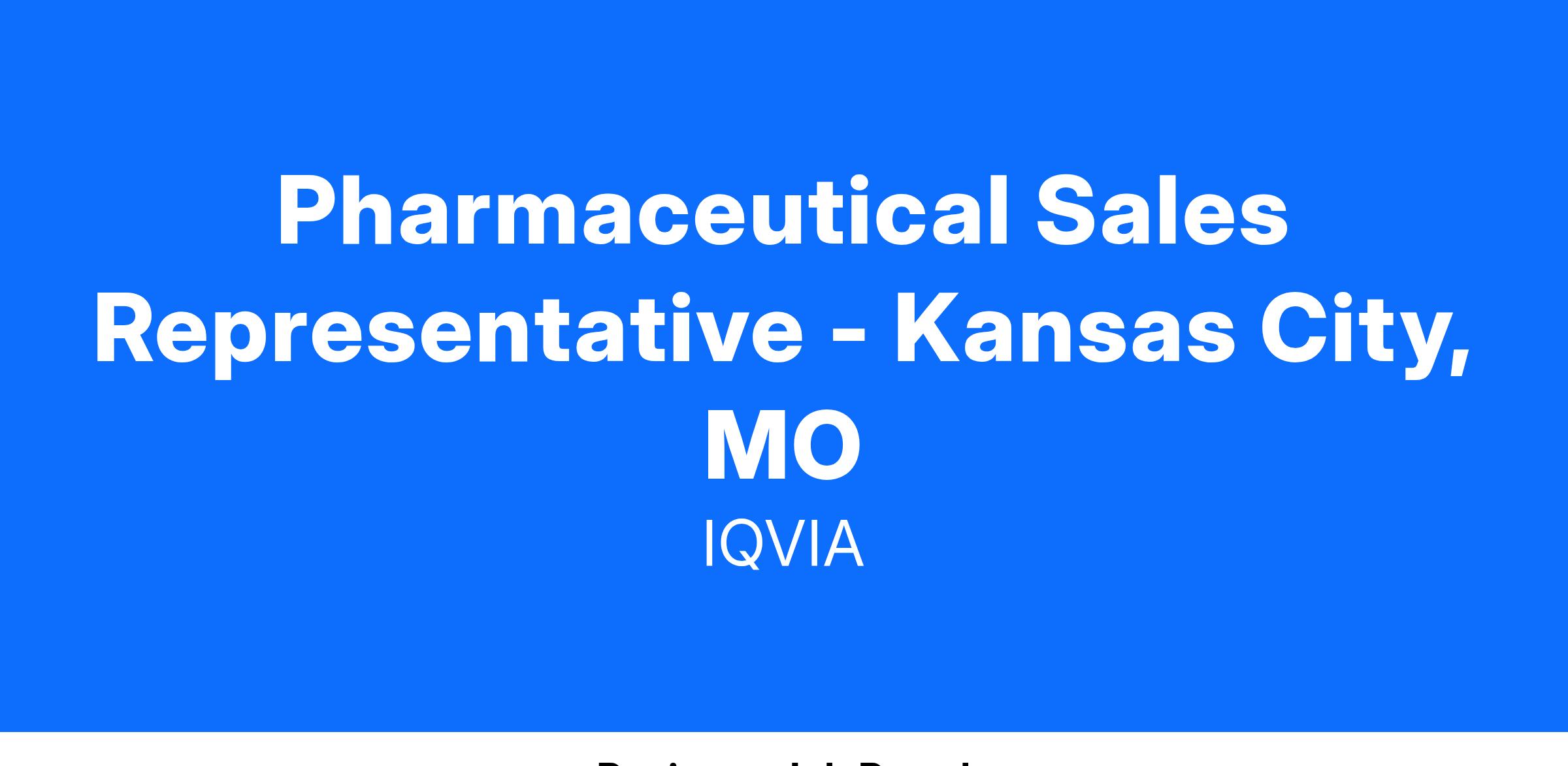 Pharmaceutical Sales Representative - Kansas City, MO