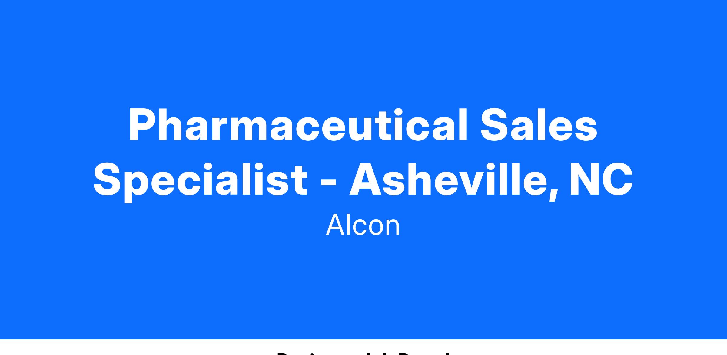 We foster an inclusive culture and are looking for diverse, talented people to join Alcon. As a Sr. Associate, Pharmaceutical Sales one will be responsible for covering a large territory and will focus on a defined target list of physicians/practitioners within the territory. One will also assure the needs of all partners are met within compliance guidelines while developing relationships and maintaining an active presence in the pharmaceutical community or associated organizations throughout the territory area of Asheville, NC.