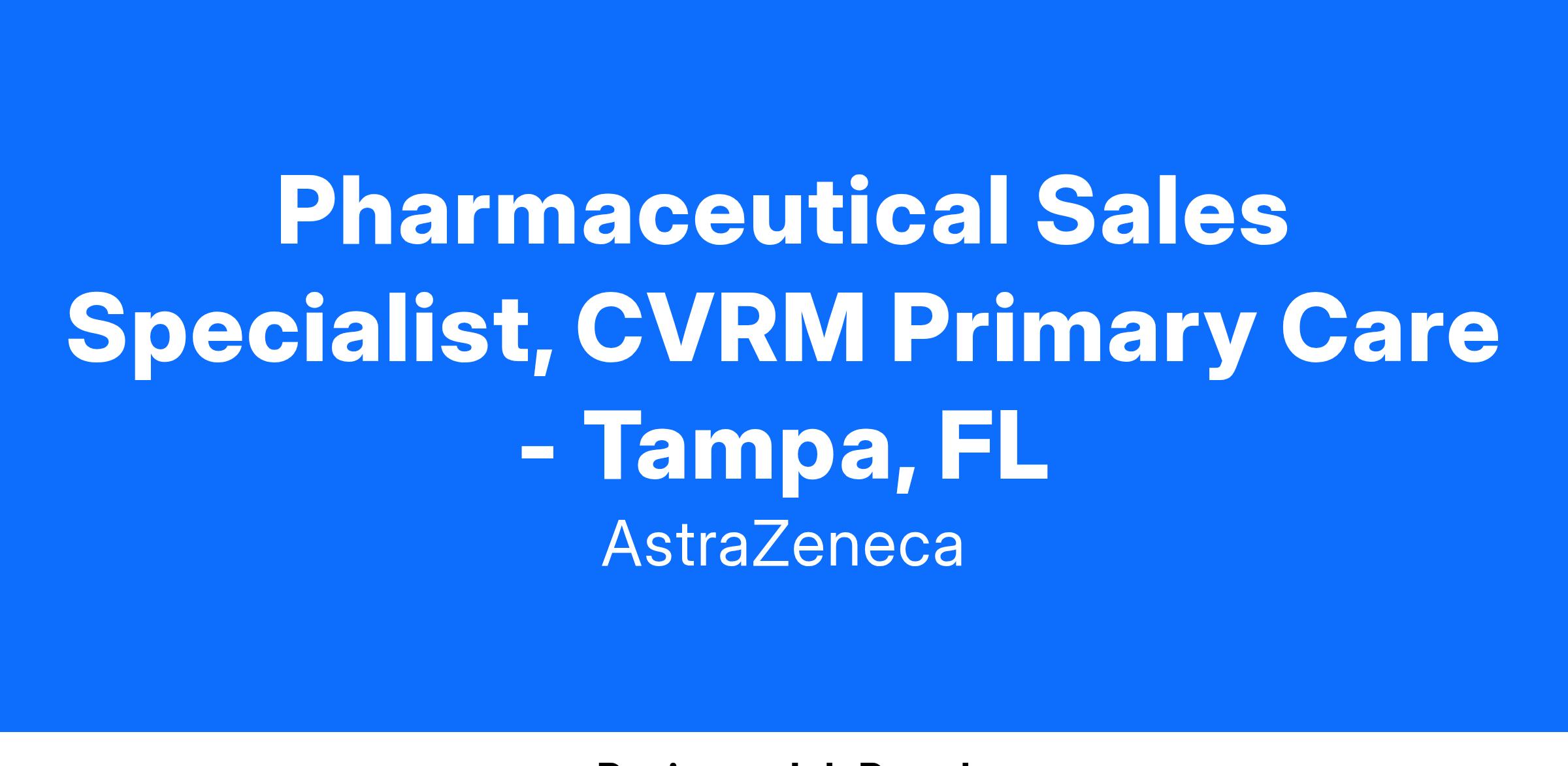 The AstraZeneca’s US BioPharma CVRM Primary Care Team plays a fundamental role to ensuring a comprehensive view of patient care and customer engagement within our Cardiovascular, Renal and Metabolic Disease (CVRM) therapeutic area. AstraZeneca's strategy in CVRM focuses on ways to reduce morbidity, mortality and organ damage by addressing multiple risk factors across CV disease, diabetes and chronic kidney-disease indications. The patient-centric approach is reinforced by science-led programs and technologies, including early research into regenerative methods. As a Pharmaceutical Sales Specialist - CVRM Primary Care Team, you’ll play a pivotal role in channeling our scientific capabilities to make a positive impact on changing patients’ lives.