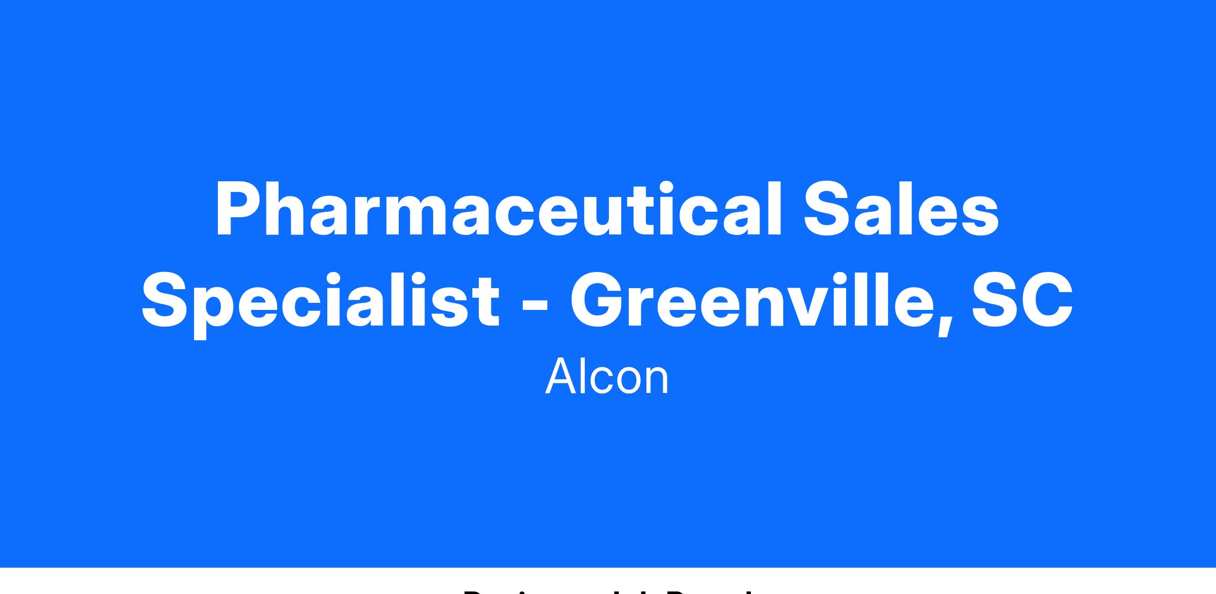 We foster an inclusive culture and are looking for diverse, talented people to join Alcon. As a Sr. Associate, Pharmaceutical Sales - Glaucoma Team one will be responsible for covering a large territory and will focus on a defined target list of physicians/practitioners within the territory. One will also assure the needs of all partners are met within compliance guidelines while developing relationships and maintaining an active presence in the pharmaceutical community or associated organizations throughout the territory area of Greenville, SC.