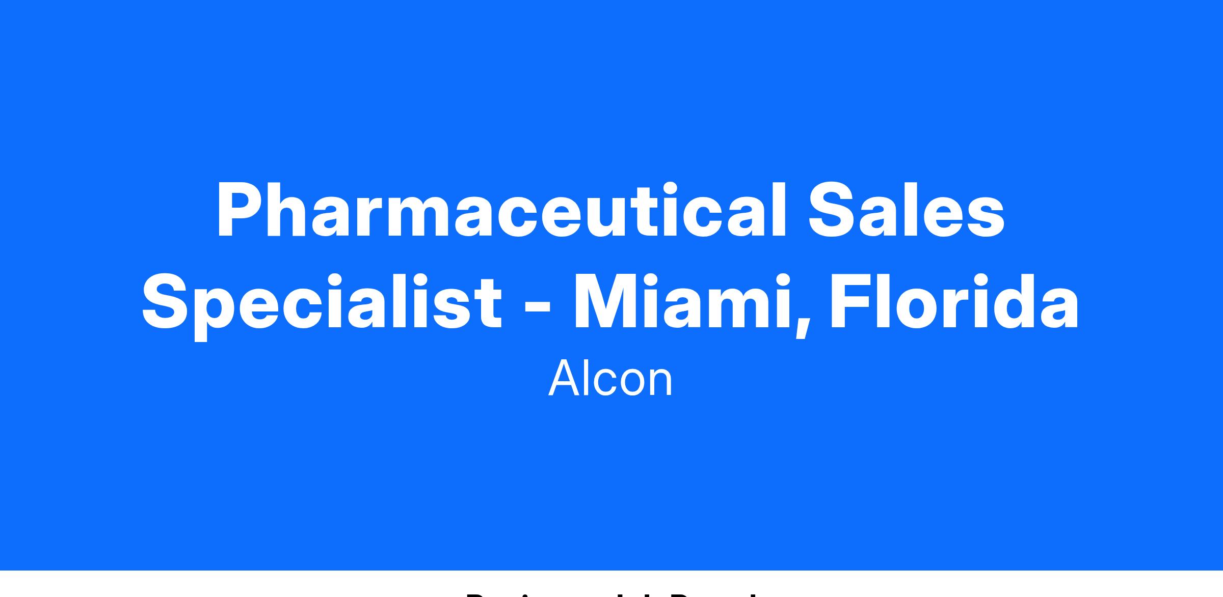 We foster an inclusive culture and are looking for diverse, talented people to join Alcon. As a Sr. Associate, Pharmaceutical Sales one will be responsible for covering a large territory and will focus on a defined target list of physicians/practitioners within the territory. One will also assure the needs of all partners are met within compliance guidelines while developing relationships and maintaining an active presence in the pharmaceutical community or associated organizations throughout the territory area of Miami, Florida.