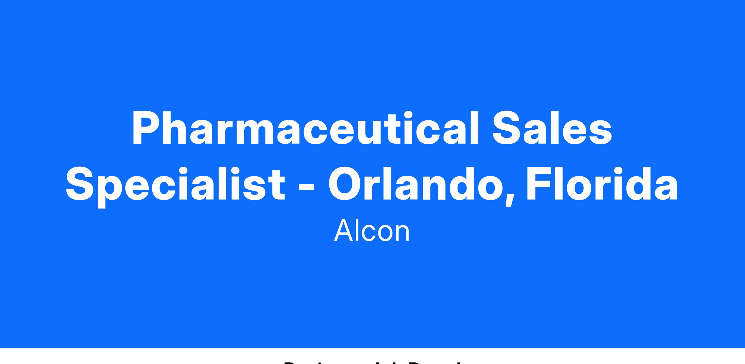 We foster an inclusive culture and are looking for diverse, talented people to join Alcon. As a Sr. Associate, Pharmaceutical Sales one will be responsible for covering a large territory and will focus on a defined target list of physicians/practitioners within the territory. One will also assure the needs of all partners are met within compliance guidelines while developing relationships and maintaining an active presence in the pharmaceutical community or associated organizations throughout the territory area of Orlando, Florida.