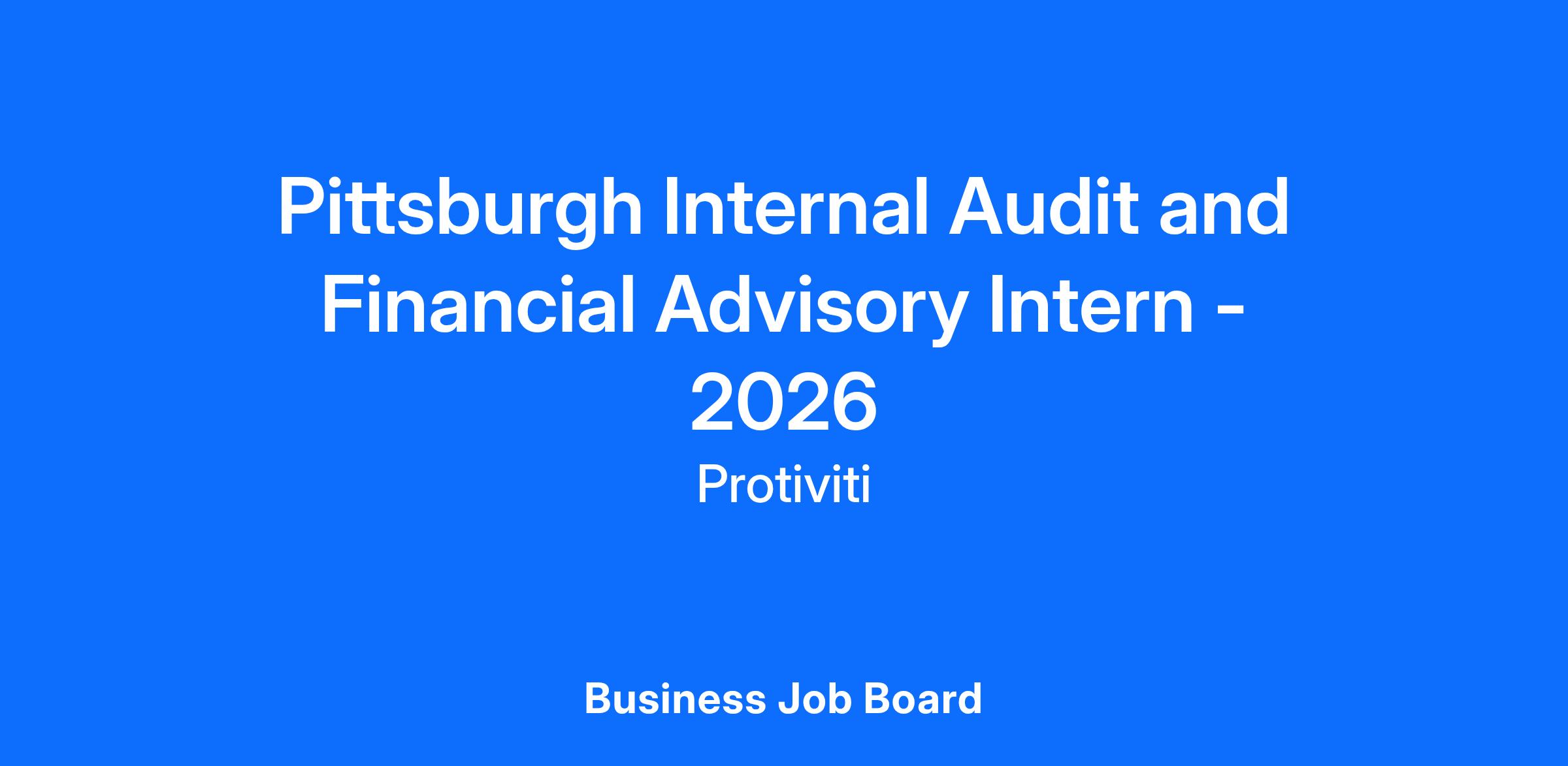 Pittsburgh Internal Audit and Financial Advisory Intern - 2026LOCATION