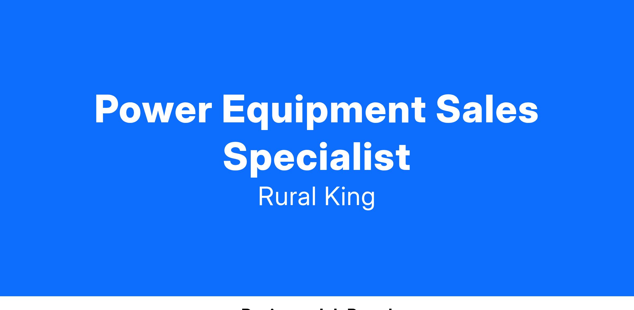 The purpose of a Power Equipment Sales Specialist is to provide outstanding customer service with a focus on meeting and exceeding sales forecasts in all Power Equipment departments. This position must demonstrate extensive knowledge of power equipment, a strong understanding of the retail financing process, knowledge of competitive product offerings, and have experience with relationship building and closing sales. The applicable product classes this position would focus on include, but are not limited to: Tractors, Tractor Attachments & Implements, Zero-Turn and Riding Lawn Mowers, Utility Trailers, UTVs, and all related accessories and parts. As the Power Equipment Sales Specialist, you will be the direct point of contact for all the customer’s power equipment needs for the whole life cycle of their equipment (sales, service, warranty, etc.).