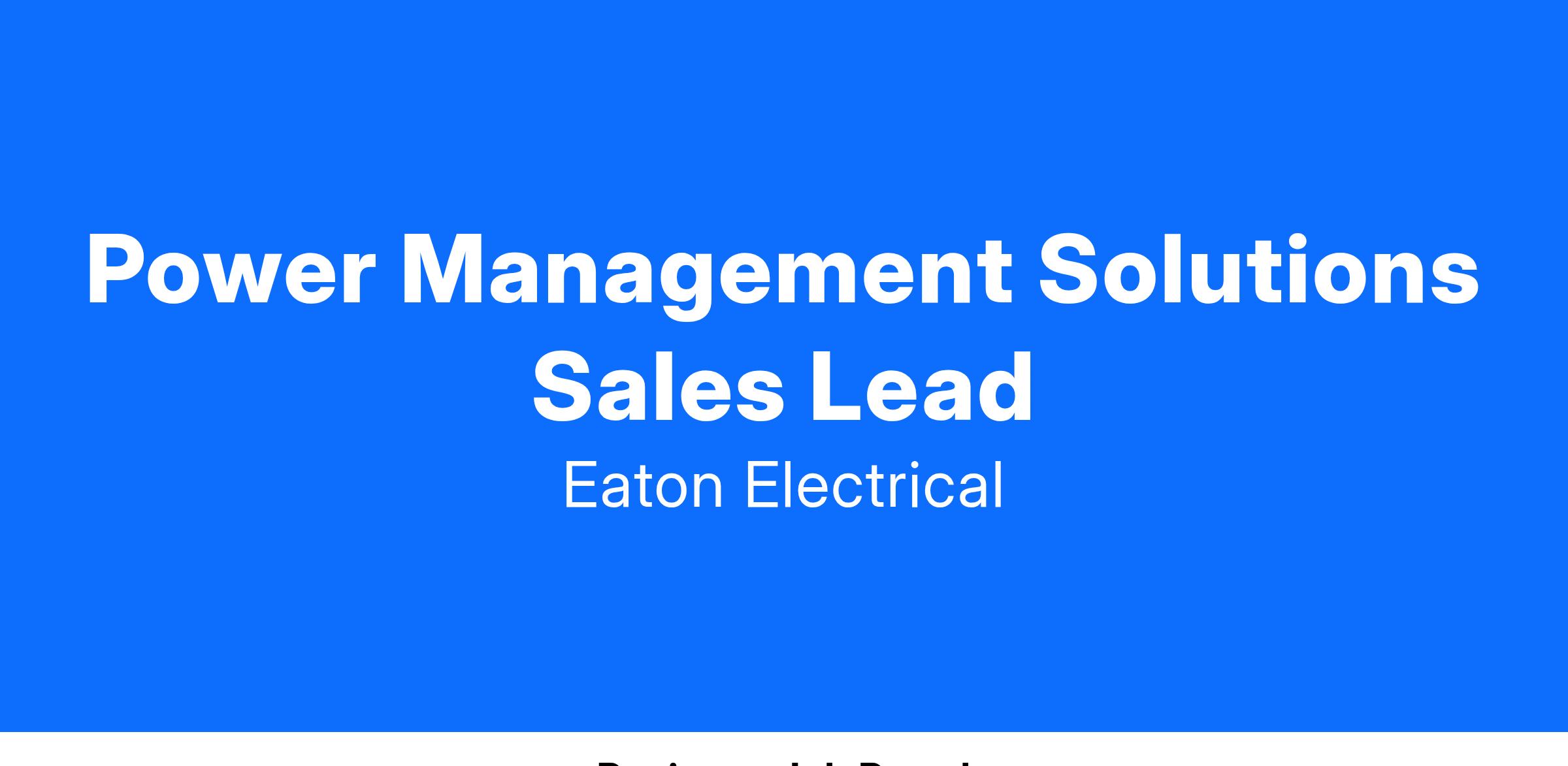 Eaton’s Electrical Engineering & Services division is currently seeking a Power Management Solutions Sales Lead. This is a remote role with approximately 50% travel in the Southeast territory.