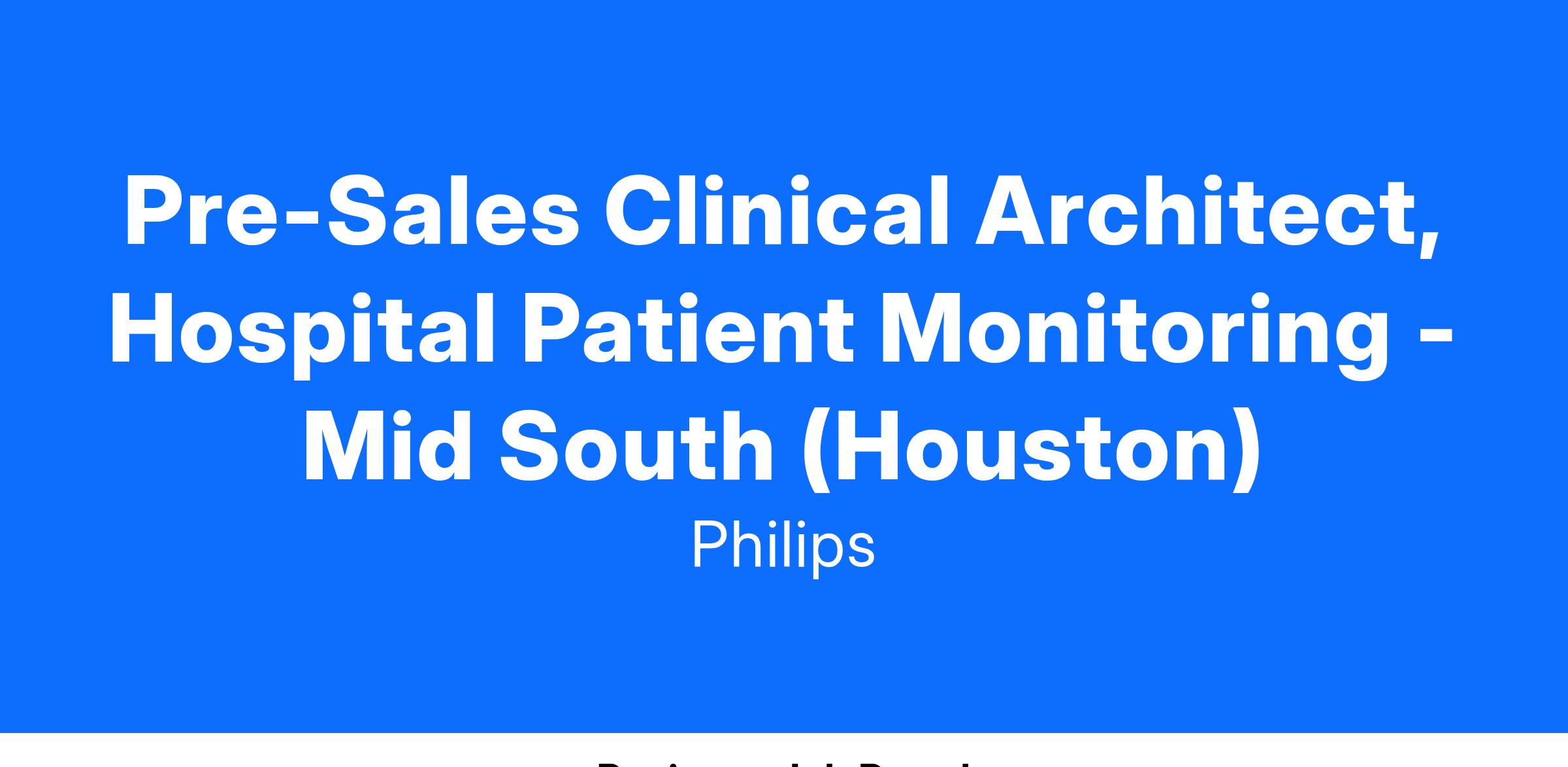 Pre-Sales Clinical Architect, Hospital Patient Monitoring – Mid South (Houston)