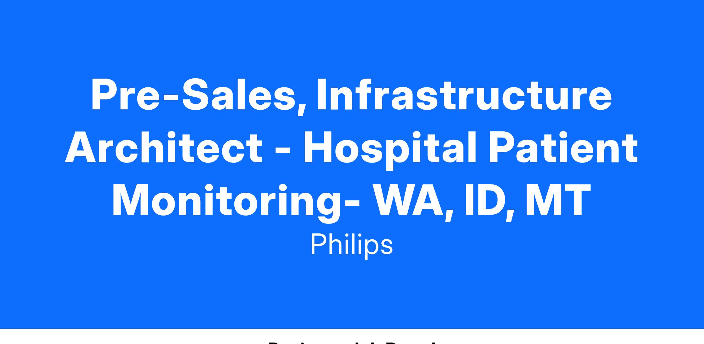 Pre-Sales, Infrastructure Architect, Hospital Patient Monitoring (WA, ID, MT)