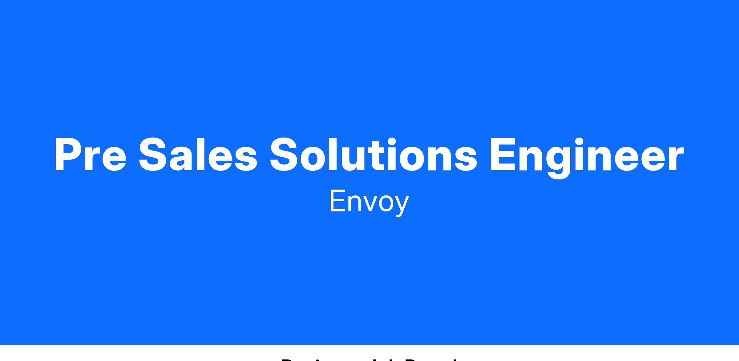 The Solutions Engineering team at Envoy lives within the Customer Success organization but touches every team (sales, product, engineering, finance, etc). The team is adaptable and has the uncanny ability to pick up new skills quickly. Each day is different and involves assisting account executives with the pre-sales process, security questions, QA’ing some experimental functionality, or jumping on a call to both triage and solve a customer issue. The Solutions Engineering team is multifaceted at Envoy and includes elements of sales engineering, API development, support escalations, and world-class enterprise customer support. You might be a Solutions Engineer if you are technology-forward, enjoy learning new third-party SaaS products, find workarounds to make customers happy, and love playing with the latest technology.