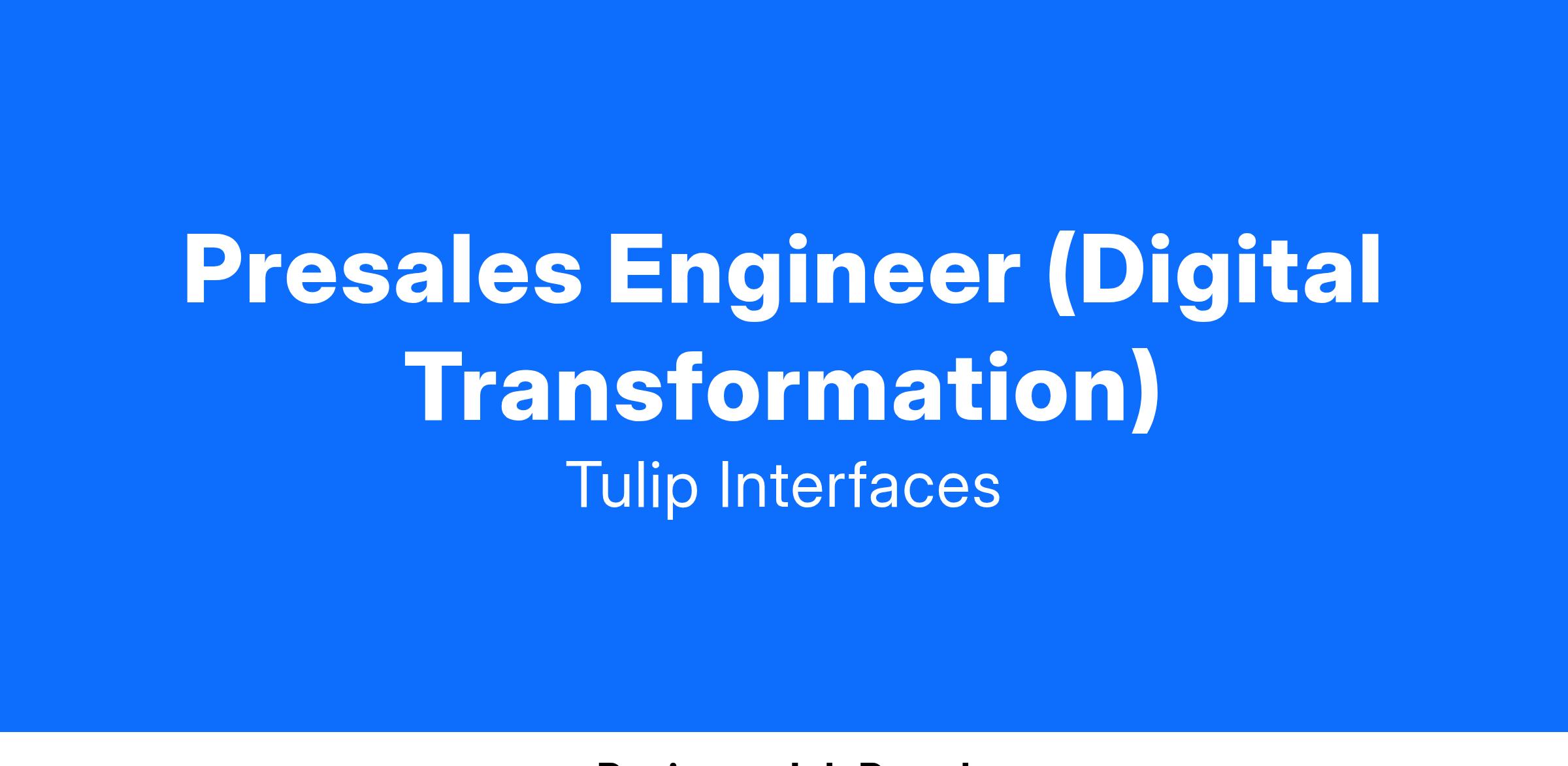 - Provide comprehensive pre-sales technical support, through impactful technical demonstrations of Tulip solutions, effectively communicating benefits to various stakeholders.