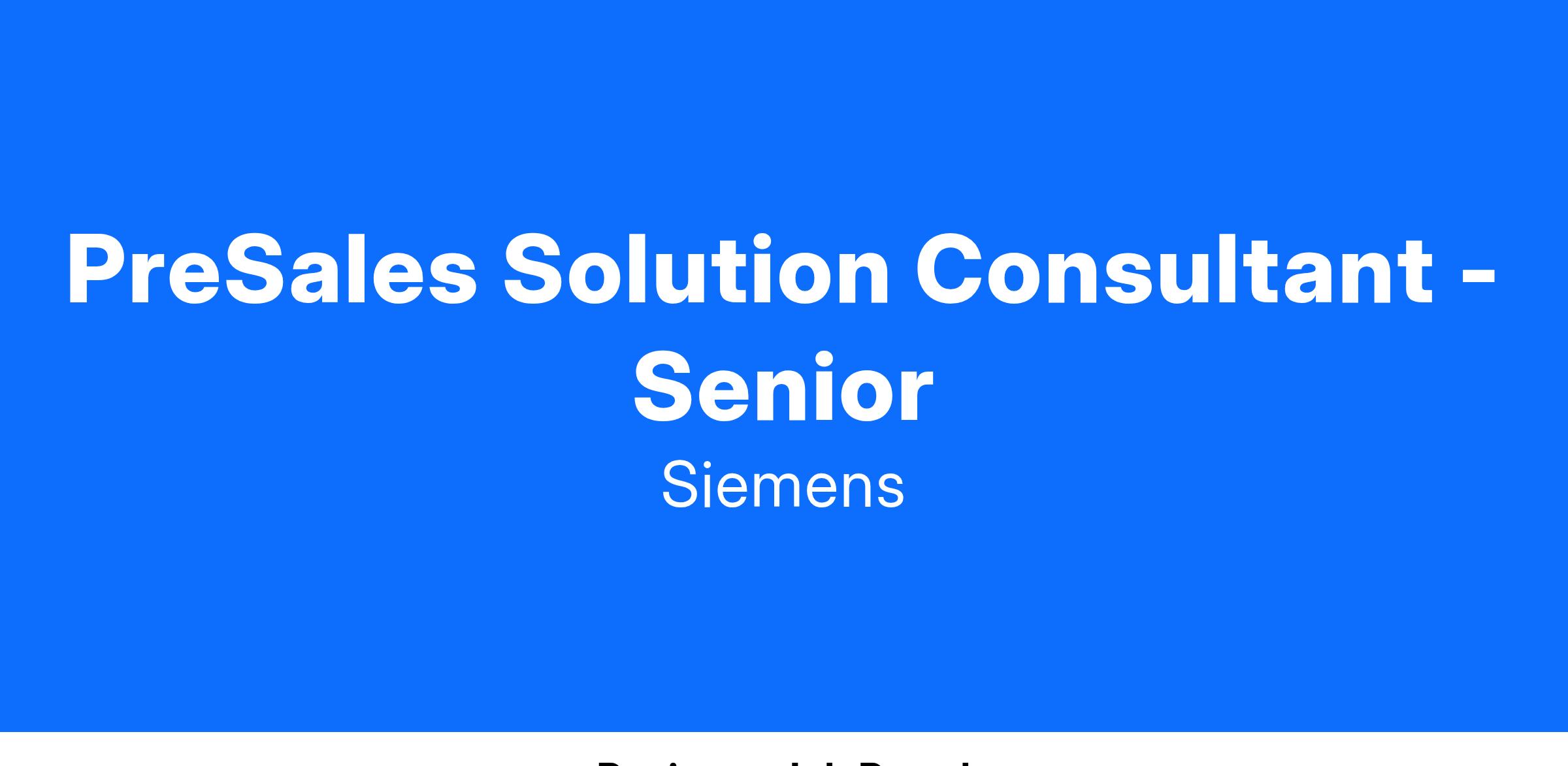This position is part of the Insights Hub Presales team for Americas, which is responsible for providing technical sales consulting support to the sales teams. The team typically conducts IoT discovery consulting with customers to lay out the customer use cases and create overall solution architecture and at the same time, identify what constitutes a POC (Proof of Concept). The team is also responsible to deliver and execute these POC projects and help the customer achieve POV (Proof of Value). Some of such projects include the On-Prem or Government Cloud deployment of cloud infrastructures to critical facilities that include US Government.
