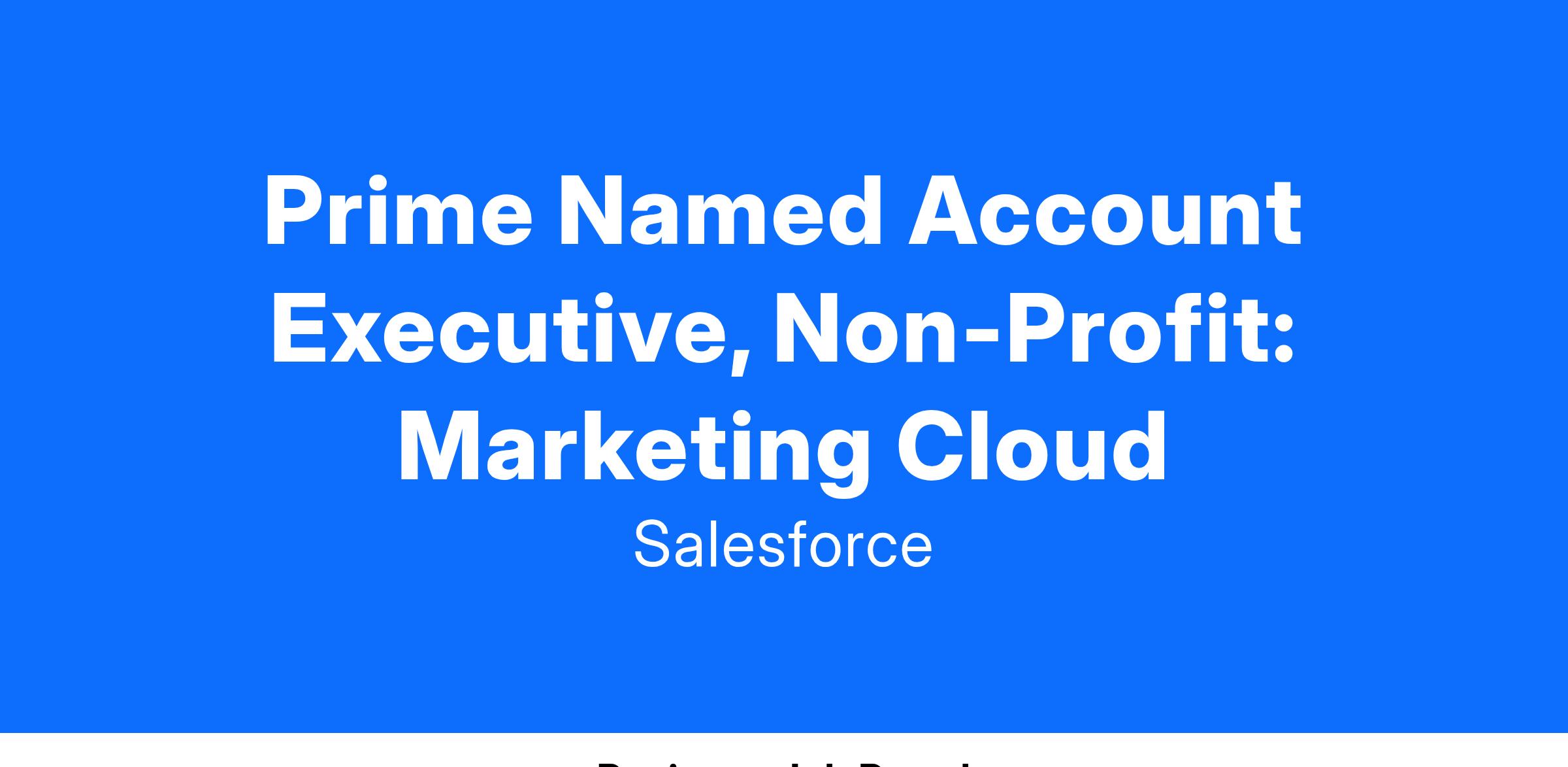 The Salesforce Digital AE is a subject matter expert and trusted advisor who works with nonprofit prospects and customers to evangelize marketing platform solutions that deliver relevant, personalized journeys across channels and devices. We are seeking an experienced quota-carrying sales executive who can work both as part of a broader Account Team and as an Individual Contributor driving self-generated sales opportunities focused on the full Salesforce Marketing technology stack. If you have a passion for being at the cutting edge of how Nonprofits engage with their constituents, we want to speak with you!