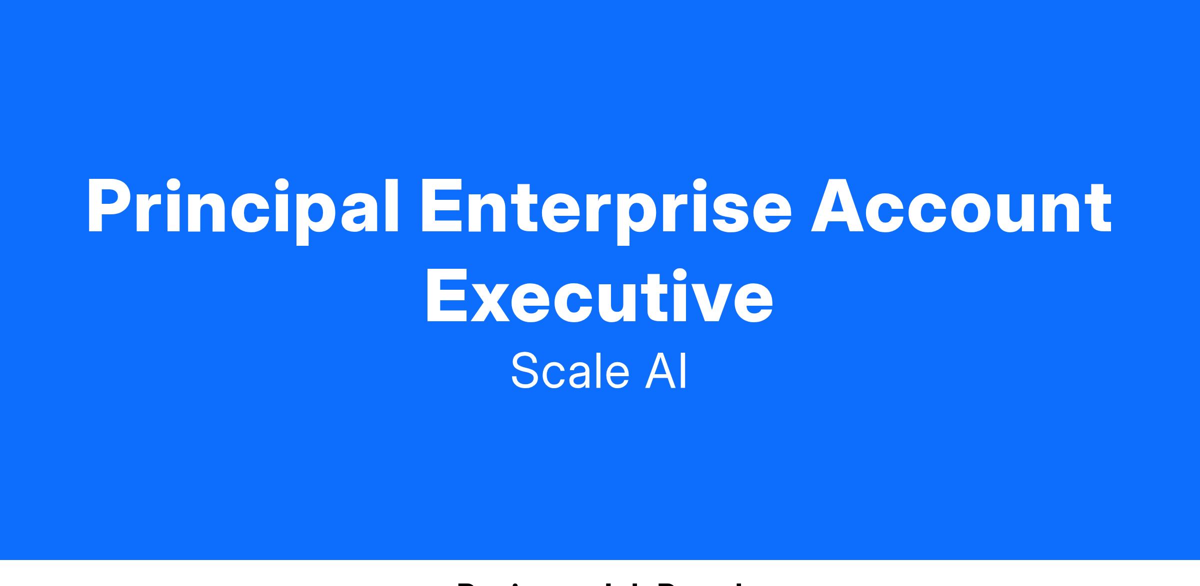 The Principal Enterprise Account Executive is a net new business hunter role that will report into the VP of Enterprise Sales for our Scale Generative AI Platform Business, and will be responsible for growing Scale’s market share within the Enterprise Vertical. Scale’s Enterprise Go-To-Market team is responsible for selling into Global 2000 organizations that are investing in Generative AI use cases and applications across their business. Our Ideal Customer Profile spans across technical and business stakeholders in major financial services, insurance, telco, airline, B2B tech, legal, and retail organizations. This is a highly technical role that requires: