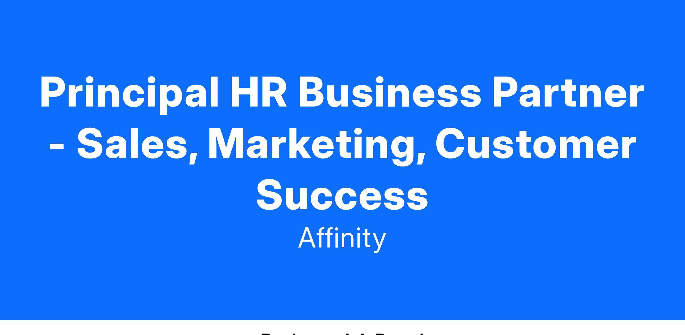 The People team at Affinity plays a key role in guiding and cultivating our outstanding culture. We’ve won multiple best workplace awards, our people are tenured, and we really enjoy working together. We’re looking for a Principal HRBP role to support our Customer Success, Marketing, and Sales managers and team members. We’re looking for a truly collaborative, business-savvy, strategic partner, to support a team that is currently remote-first, but migrating to more in-person work experiences with a hybrid model (this role is remote, but will require some travel). You’ll be great at this role if you have a passion for creative people initiatives, tinkering with what’s good to make it excellent, and a really forward-thinking mindset. You’ll be one of two HRBPs, the other one supporting our Build teams.
