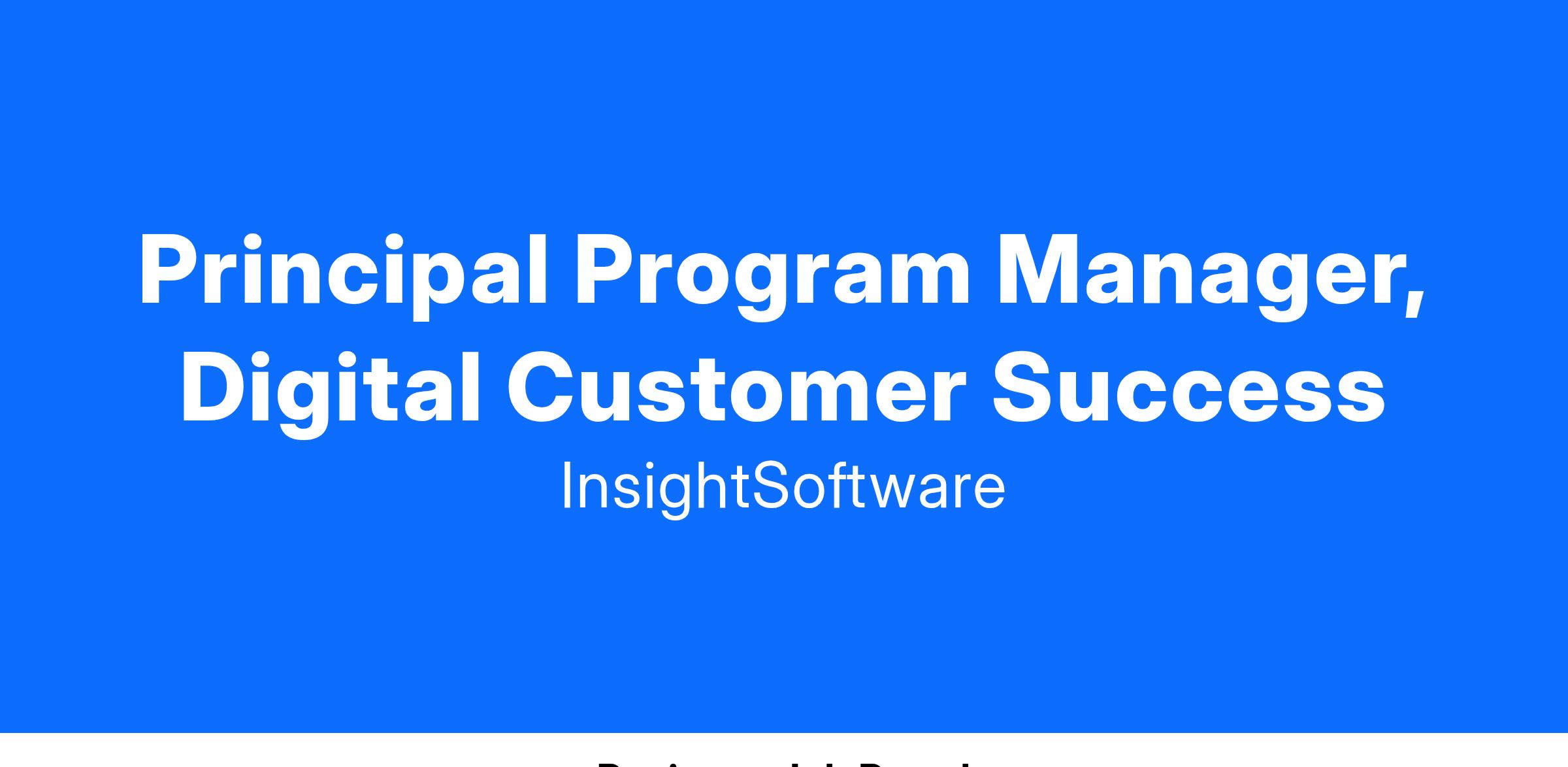 The Principal Program Manager will partner with the Customer Success Business Unit Leaders with a focus on driving the vision and strategy for our digital customer experience. They will identify opportunities and lead strategic digital success initiatives, partnering closely with cross-functional teams like business technology, product, marketing, and support to evolve and drive scalable long-term success that results in outstanding customer experiences and satisfaction.