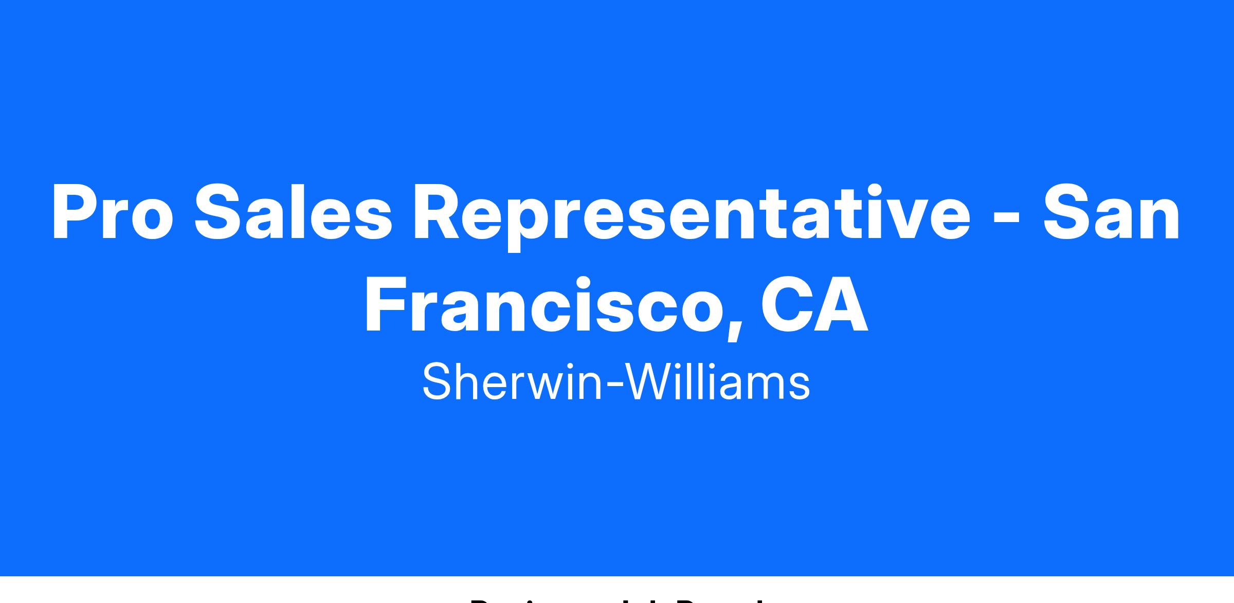 The Pro Sales Rep will be primarily based out of San Francisco, CA.