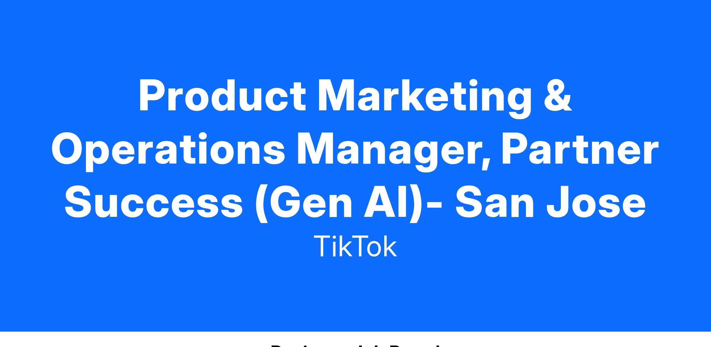 Product Marketing & Operations Manager, Partner Success (Gen AI)- San Jose