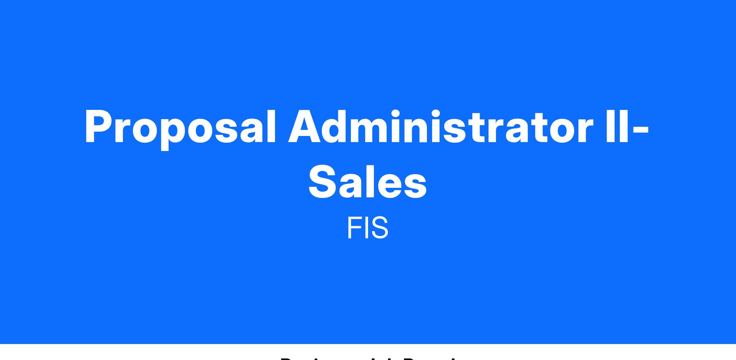 This role will support sales resources, client relationship resources and prospects through the coordination, management, development and production of sales proposals and related documentation in alignment with FIS sales and financial goals.