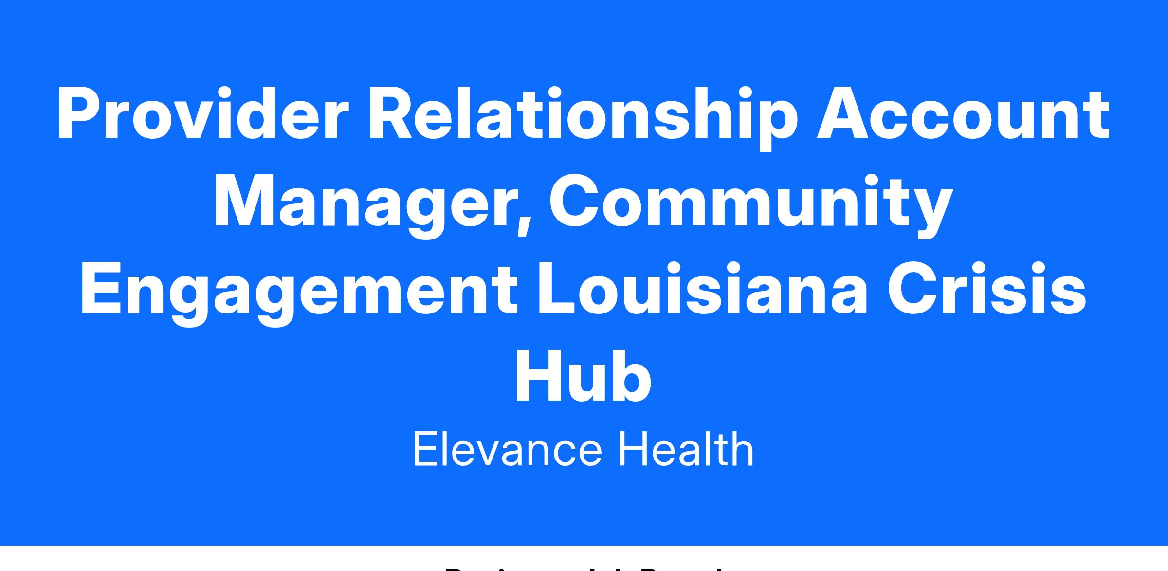Provider Relationship Account Manager, Community Engagement Louisiana Crisis HubJob Description: