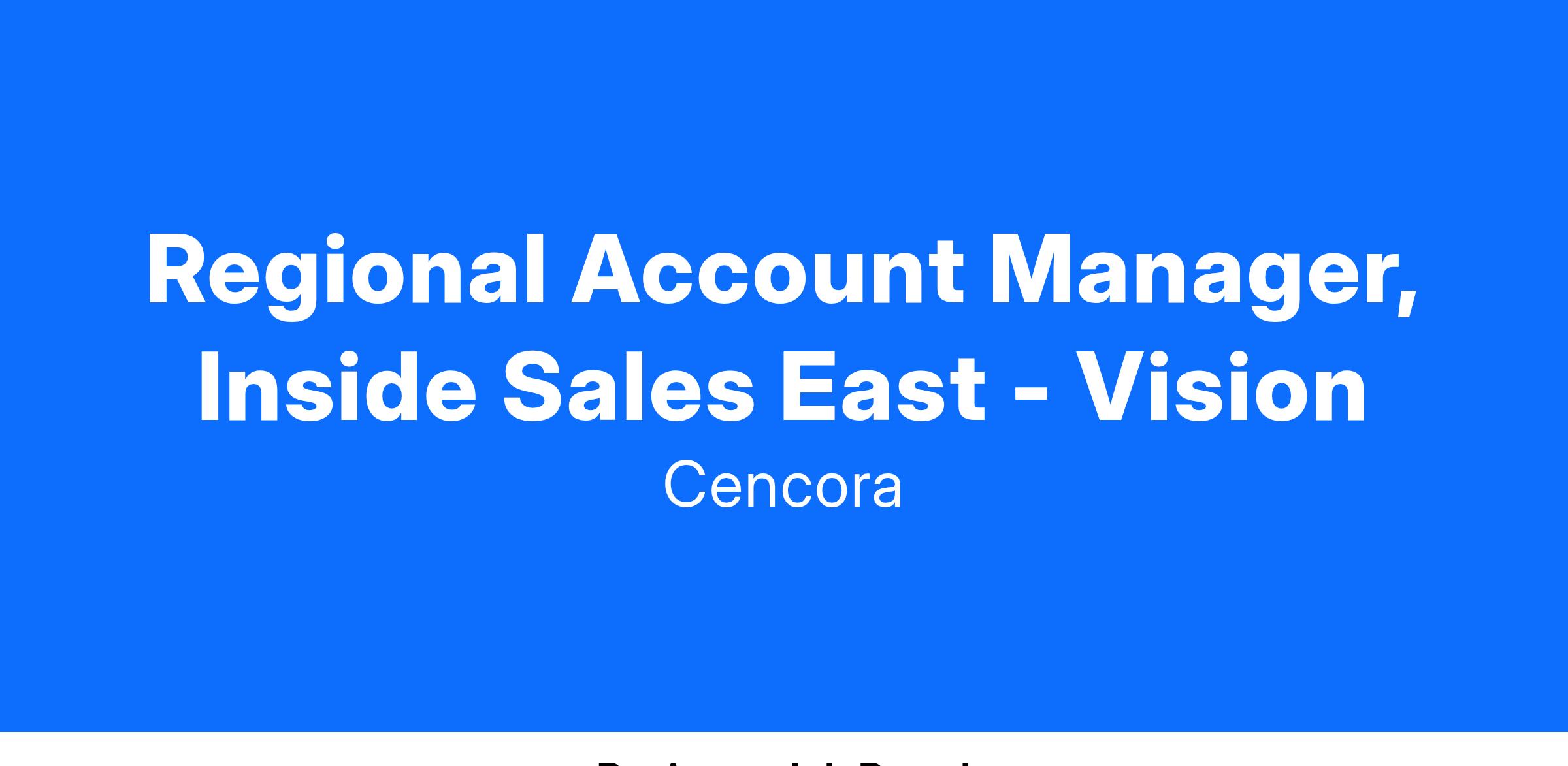 Regional Inside Sales Representative - Easworks with customers to proactively and reactively help identify, understand, and resolve business, distribution, and operational issues; responds to customer inquiries and takes actions essential to maintaining favorable customer relations; and works both independently and collaboratively with other Specialty Distribution and Cencora team members focusing on accounts where high-touch customer interaction is essential to business retention and expansion.