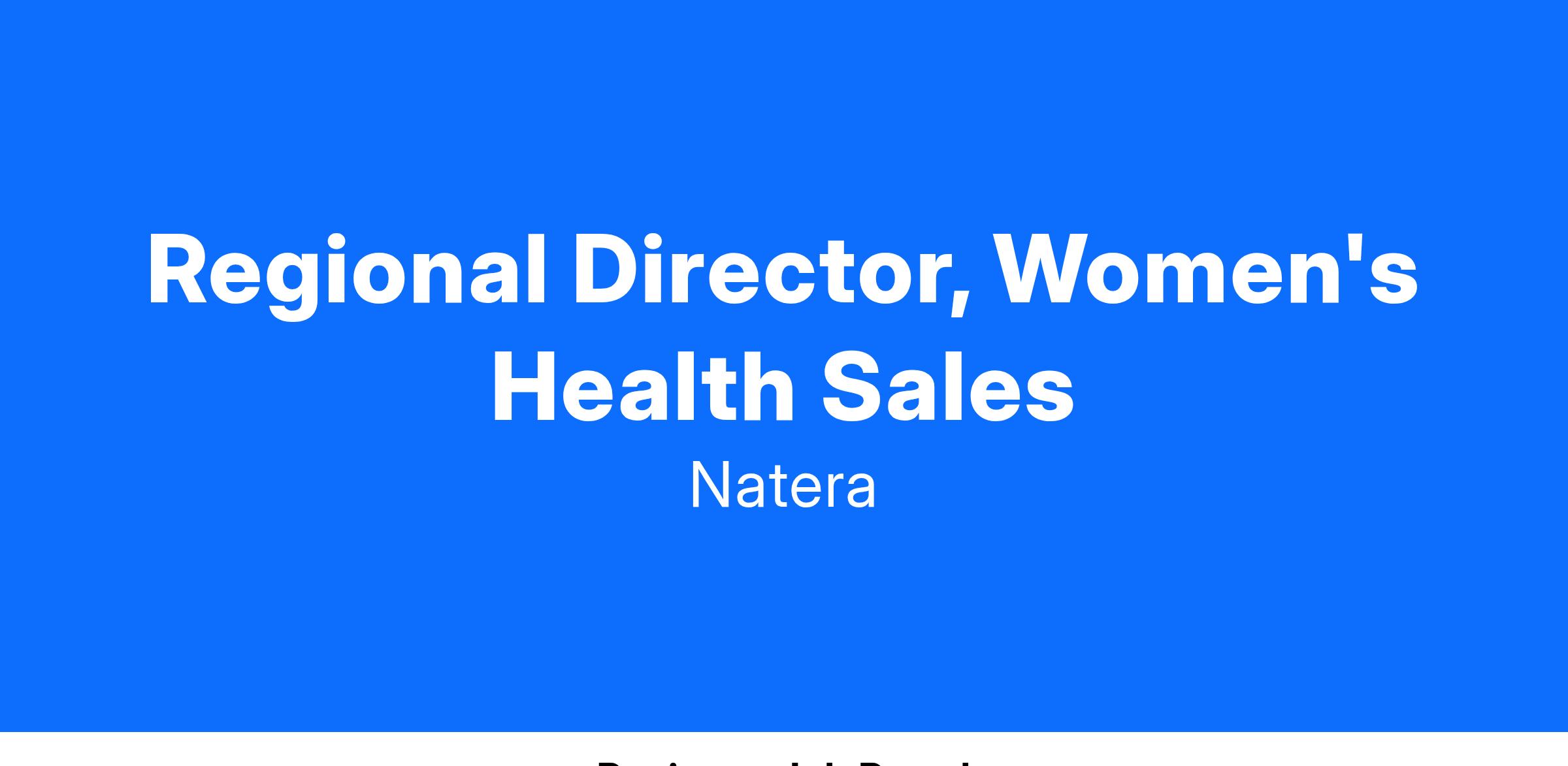 The Regional Director of Sales is responsible for the sales and growth of Natera’s genetic testing products to include noninvasive prenatal testing, carrier screen testing and miscarriage testing. This role ensures profitable growth in sales, through the planning, execution and management of a team of District Managers, Clinical Field Specialists and Account Sales Representatives in a specified geography. The Regional Director of Sales is responsible for the development, activities and goal achievement of the team; this role also is responsible for budget management and coordination of corporate support to achieve sales goals.
