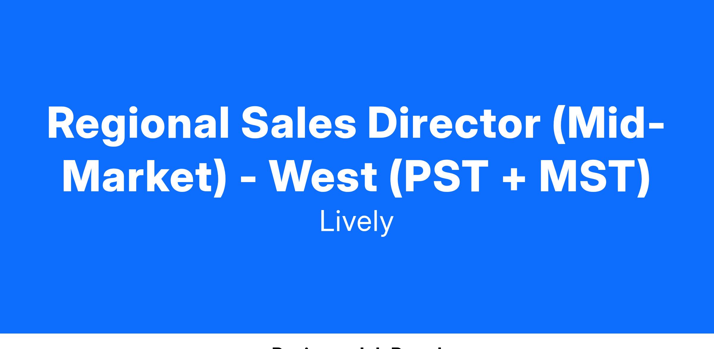 Regional Sales Director (Mid-Market) - West (PST + MST)