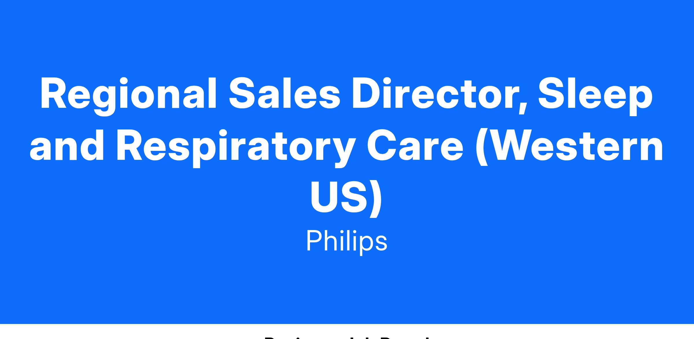 Be an integral part of the dynamic Philips Sleep and Respiratory Care (SRC) team, as the Regional Sales Director, reporting to the US Field Sales Leader, this position offers you the opportunity to play a vital role in increasing market penetration and drive the growth of Philips SRC Patient Interface products and services. The Regional Sales Director is responsible for recruiting, hiring, and developing sales territory managers as well as delivering 100% sales vs. assigned quota, managing direct report sales performance, initiatives, and activities for the defined regional customer base.