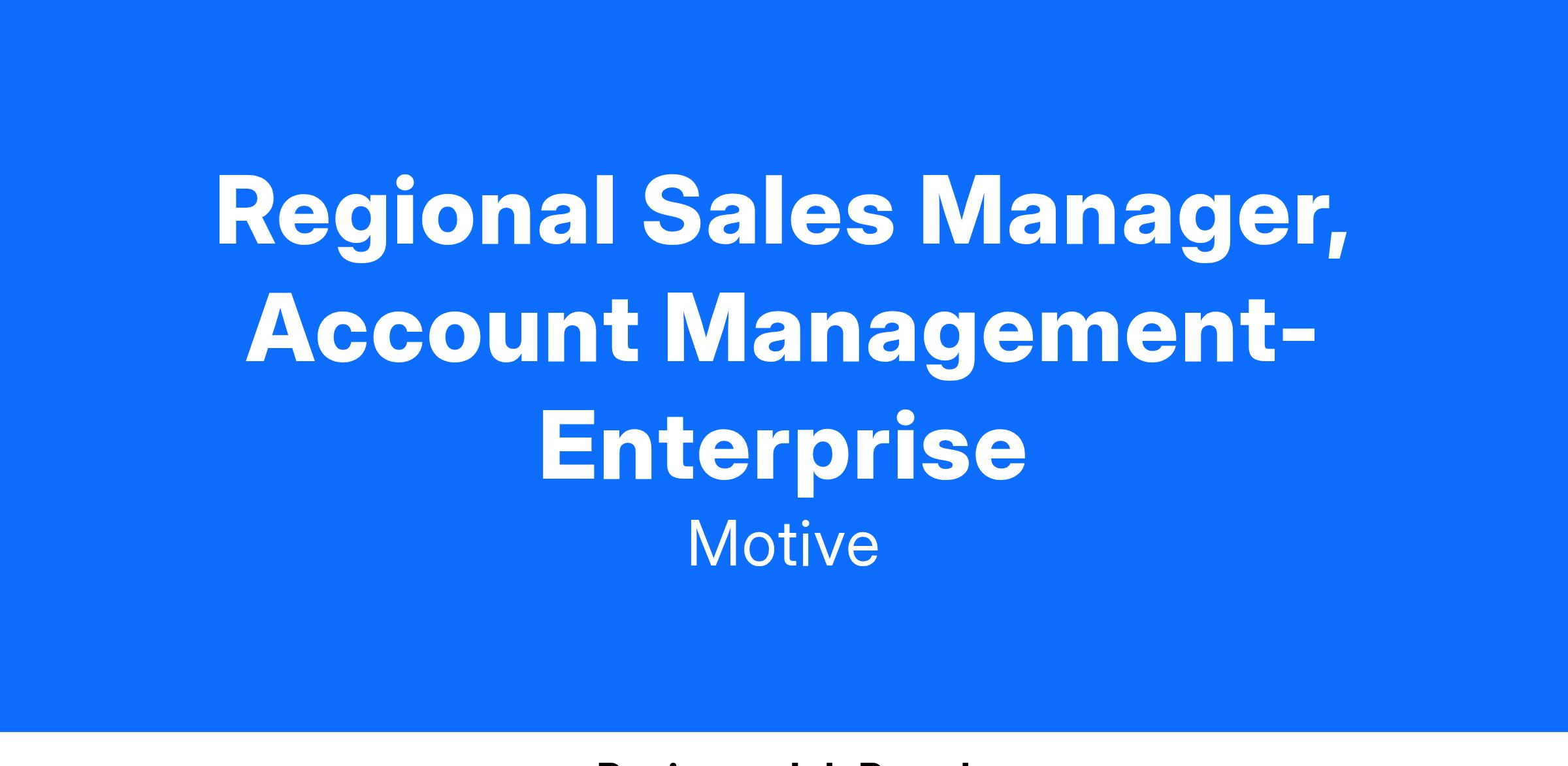 Regional Sales Manager, Account Management- Enterprise