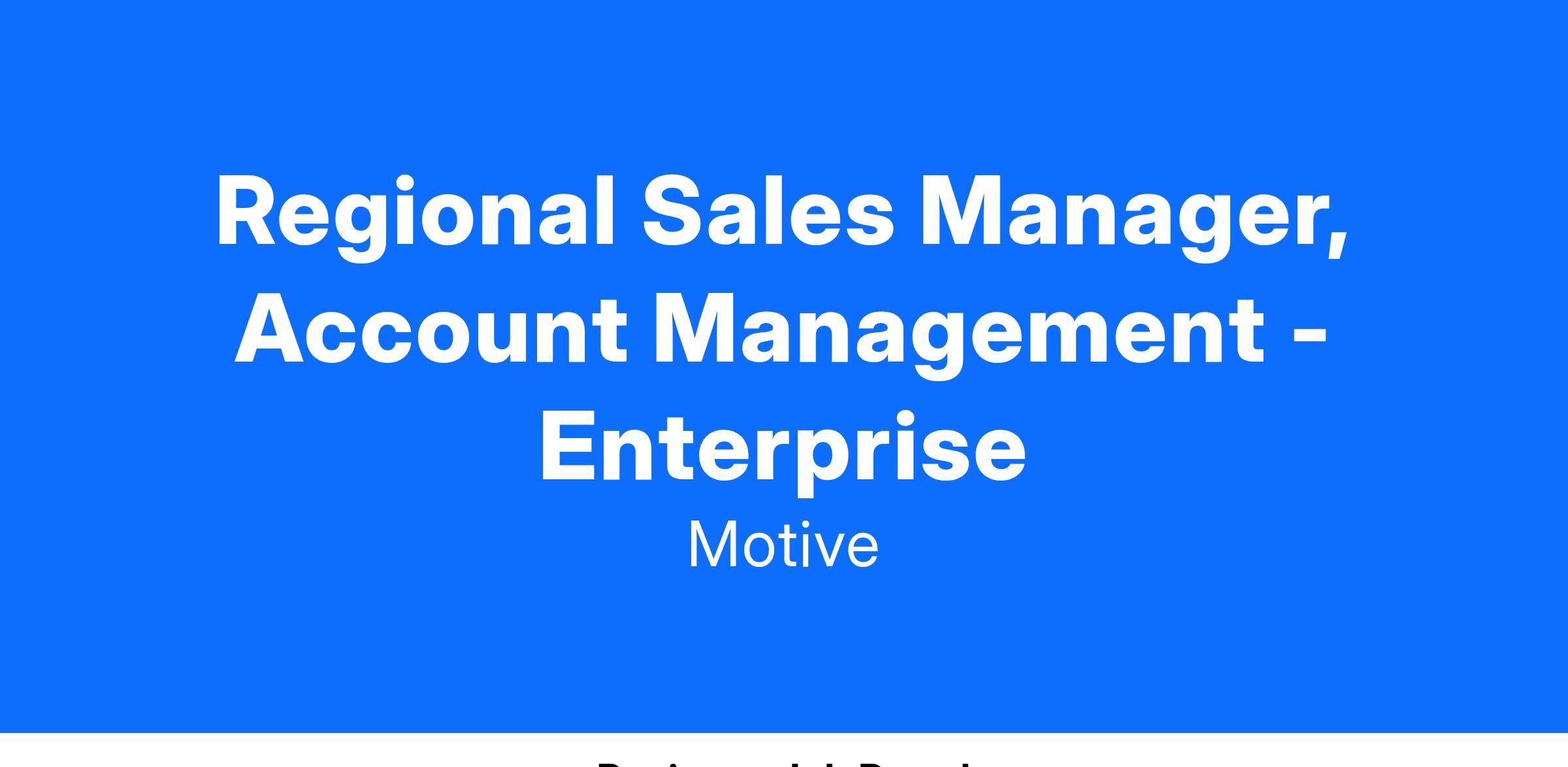 Motive's Enterprise segment focuses on companies with a total fleet size of 150-999 vehicles. Account Managers (AMs) manage the entire sales cycle. These AMs typically bring over four years of quota-carrying experience and have the flexibility to sell both remotely and through on-site visits.