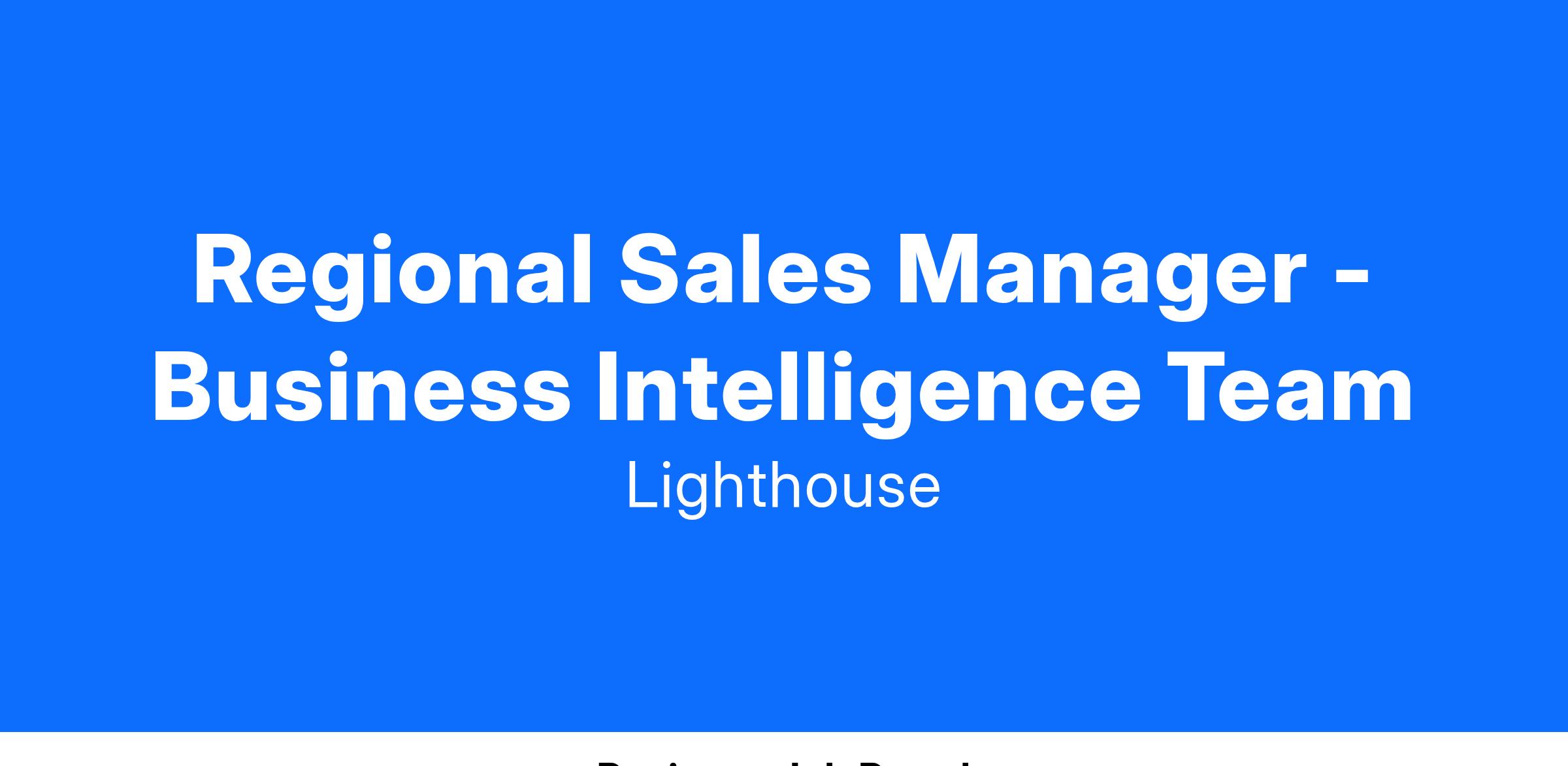 At Lighthouse, the Regional Sales Manager - Business Intelligence takes action to build and inspire a team of Business Development Managers (Account Executives). They will partner closely with Sales Leadership to develop and execute winning sales strategies, set team wide goals, and work towards team and individual quota attainment. As we continue to grow our team, we are looking for a leader available for a hybrid in-office presence in our Denver office.