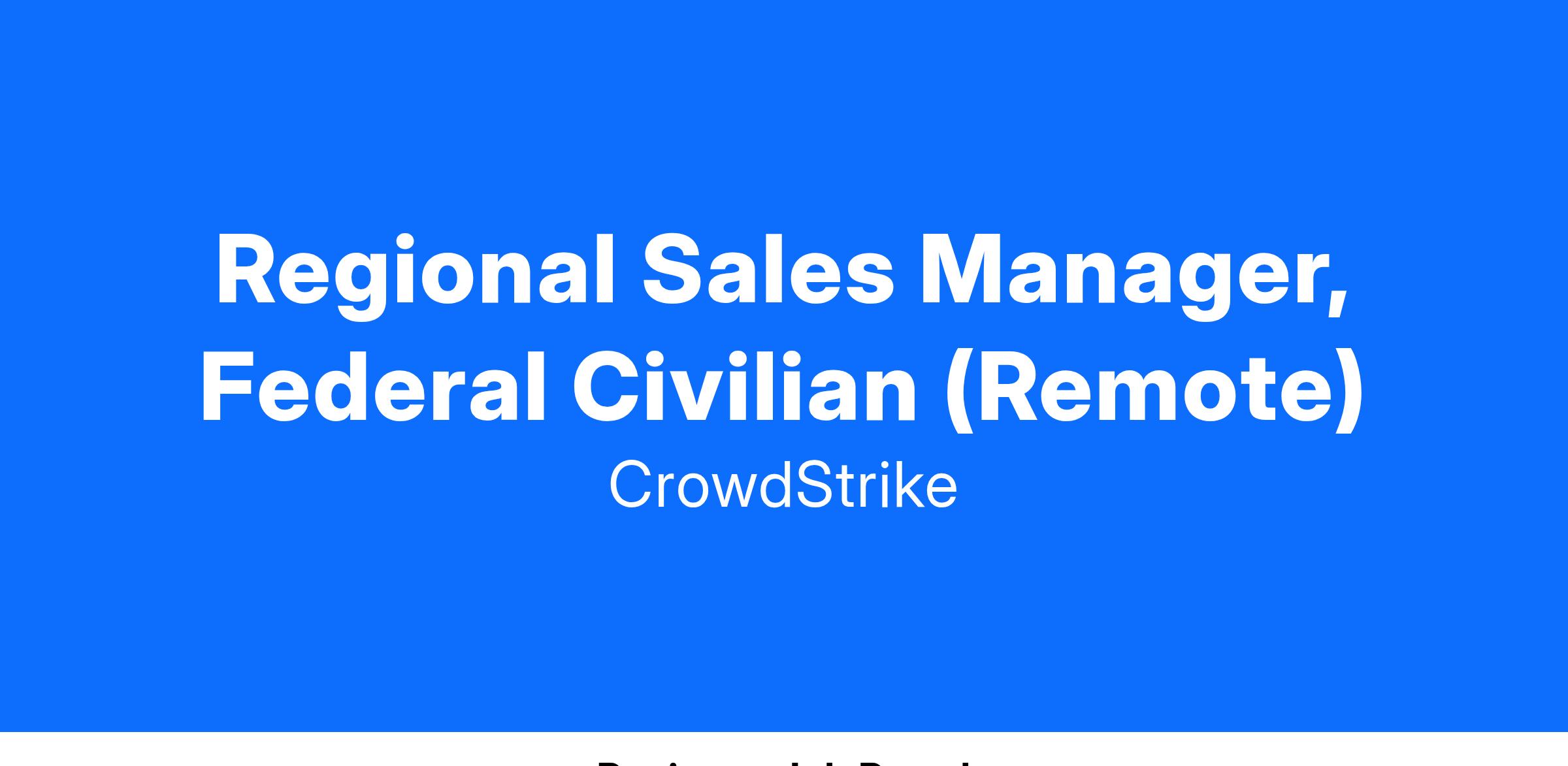 As a Regional Sales Manager, Federal Civilian Mid-Market Sales, you will possess a keen ability to position next-generation endpoint security and Threat Intelligence and articulate primary vendor strategies to new and existing customers within Federal Civilian agencies. You will take CrowdStrike’s solution capabilities and value to potential clients, match our strengths to clients' needs, and help our partners and clients defeat the adversary. You must be extremely results driven, customer focused, technologically savvy, and innovative at building internal relationships and external partnerships to attack the market with passion!