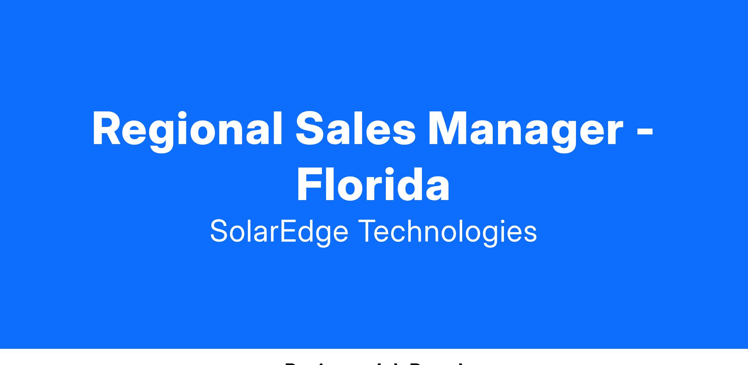 At SolarEdge, we are committed to fair, transparent pay and we strive to provide competitive, market-informed compensation. The pay range for this position in Florida at the start of employment is expected to be between $125K-$135K. Total compensation includes base, commission, and equity. Target commission is 30% of the base salary. It is anticipated that most qualified candidates will fall near the middle of this range. However, base pay offered is based on market location, and may vary further depending on individualized factors for job candidates, such as job-related knowledge, skills, experience, and other objective business considerations.