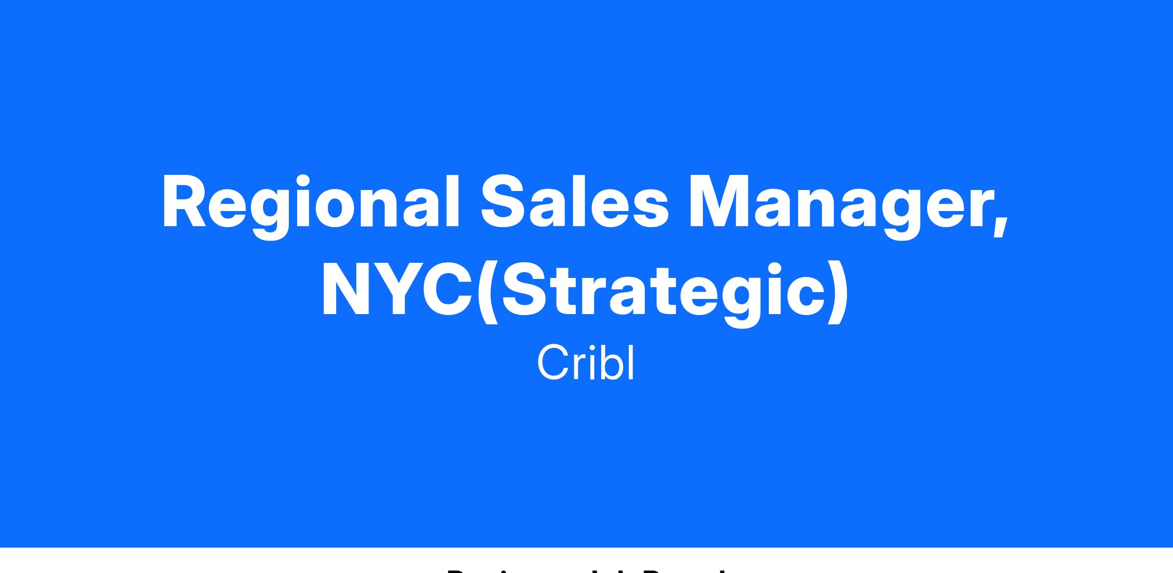 We are seeking a Strategic Sales Representative who is ambitious, adaptable, and enthusiastic. A successful Strategic Sales Rep at Cribl will clearly articulate our value proposition and execute on proven sales processes. This rep will come with accountability and ownership, specifically in meeting leading indicators. Most importantly, we put our customers first, always. We are looking for a rep who will do just that. The ideal candidate will come with expertise in creating customer centric solutions, and be able to build strong enduring relationships with our customers.