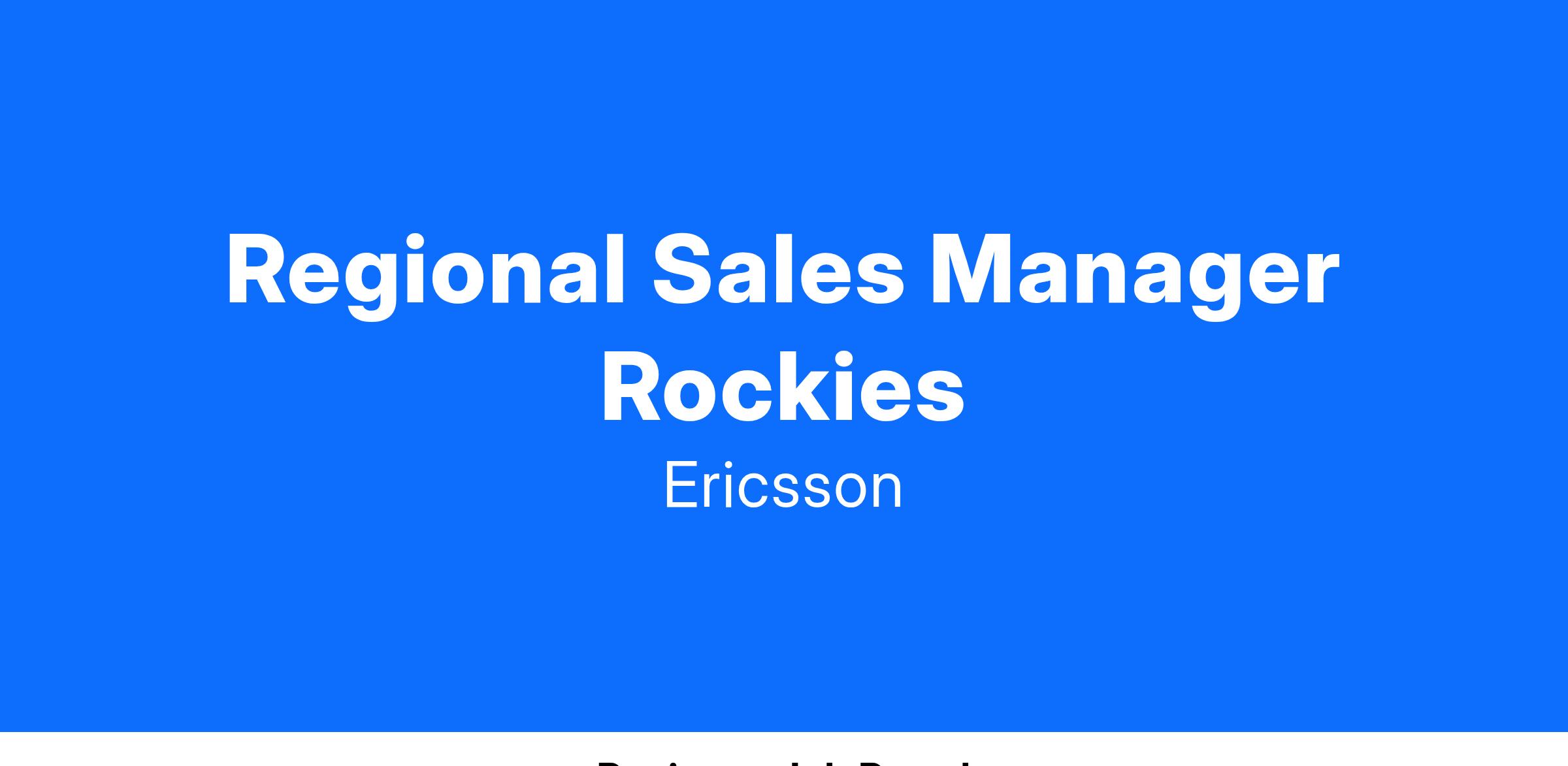 This position will be based in the Denver, CO Region, and will be responsible for Colorado, and Utah.