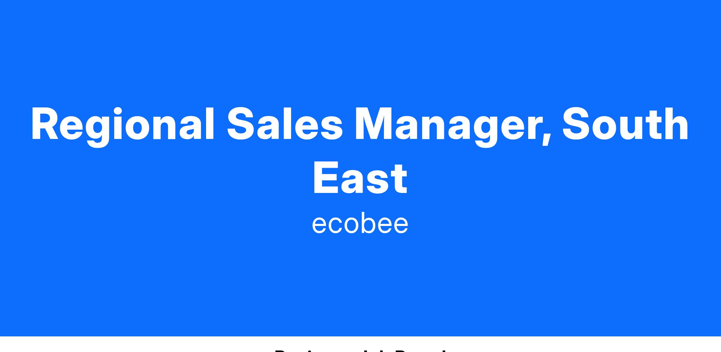 As a member of our Pro team you will work with a driven and dedicated group of smart people in an environment where initiative and innovation are encouraged, and exceeding goals is rewarded. You’re a hunter who’s self-motivated, strategic, organized and results oriented! We’re looking to hire a Regional Sales Manager preferably in Florida or to sell the full line of ecobee products within our Southeast Region of Florida, Georgia, South and North Carolina, Tennessee, Alabama and Mississippi. This position will be responsible for leading sales activity within accounts as well as developing a longer-term strategy to continue to grow ecobee’s market share and brand recognition.