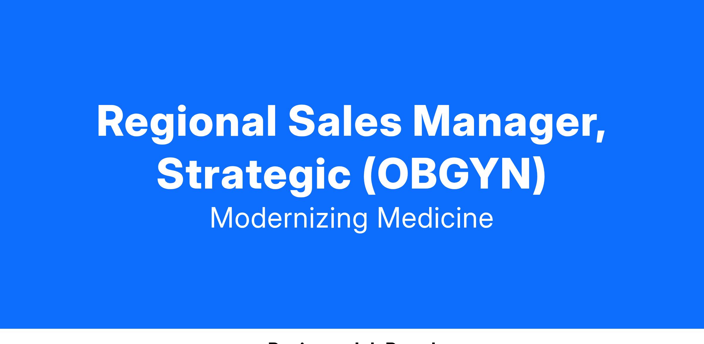 ModMed is hiring a driven Regional Sales Manager to join our positive, passionate, and high-performing Sales team focused on managing the sales process for Modernizing Medicine’s suite of software solutions and services within strategic (mid-market) accounts. You'll manage the sales process by prospecting and engaging new and existing leads, facilitating remote and onsite presentations to specialty practices, and negotiating contracts to close a significant volume of business.