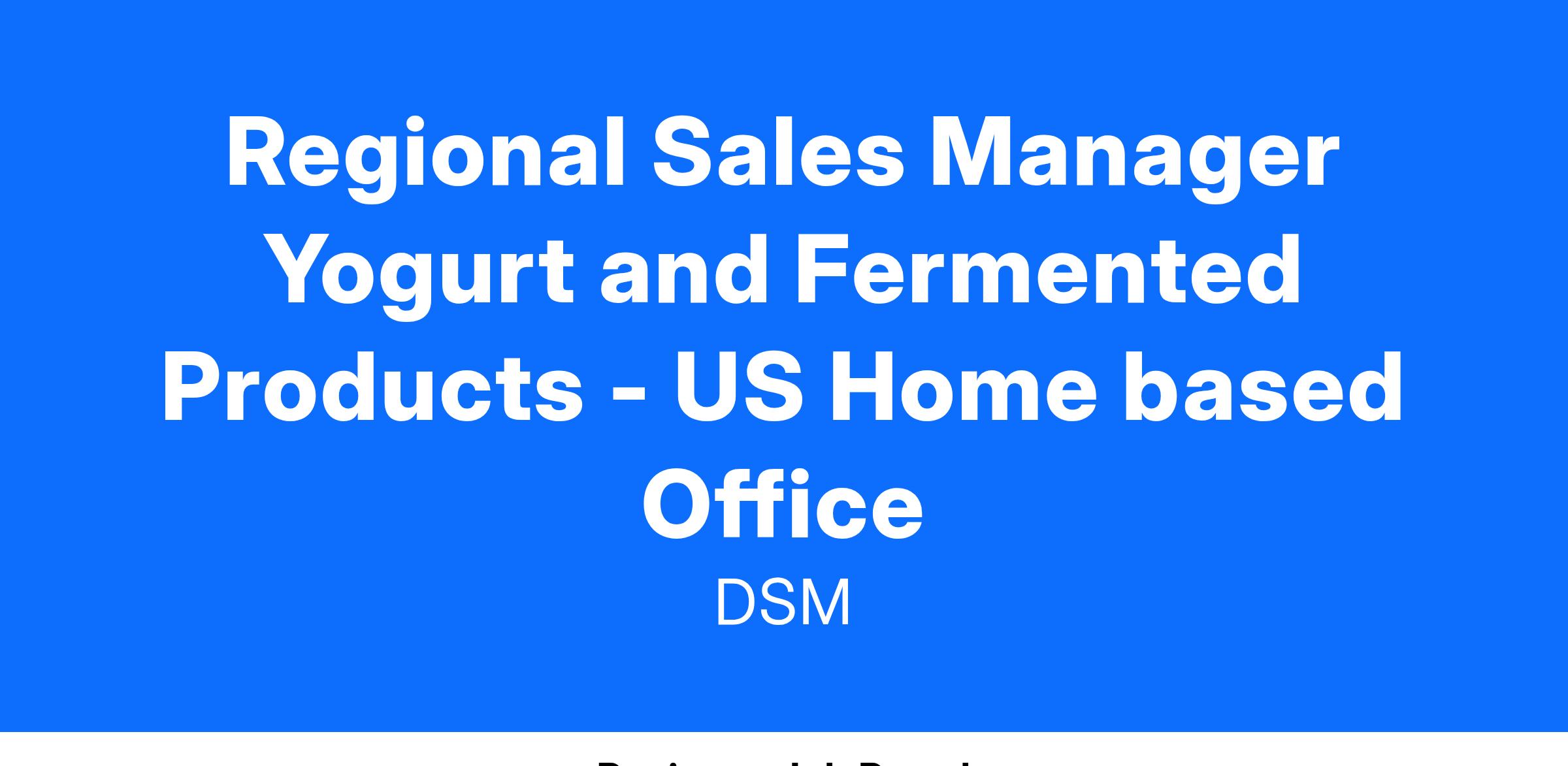 Regional Sales Manager Yogurt and Fermented Products
