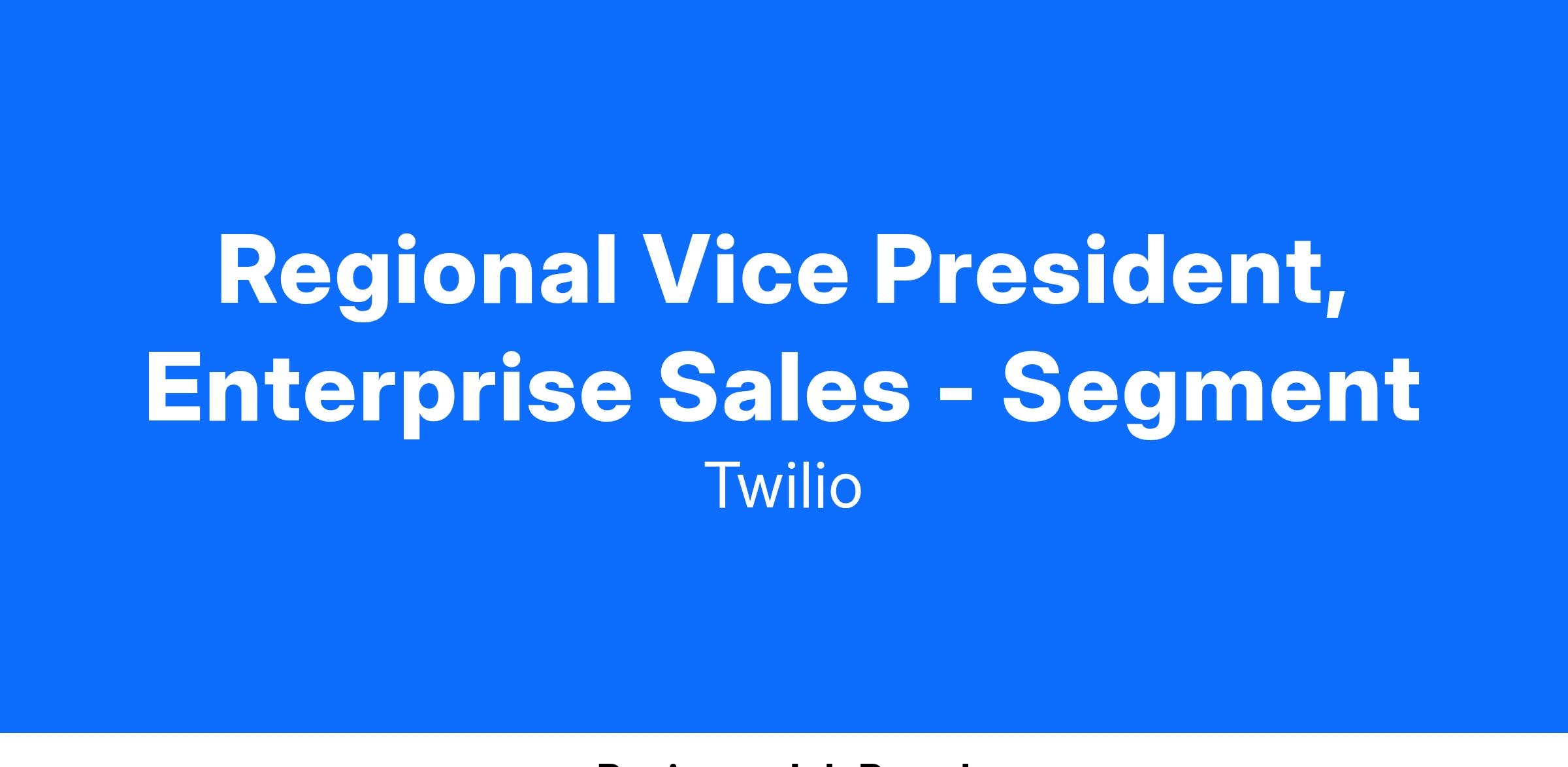 Join the team as our next Regional Vice President, Enterprise Sales on Twilio's Segment Sales Team!