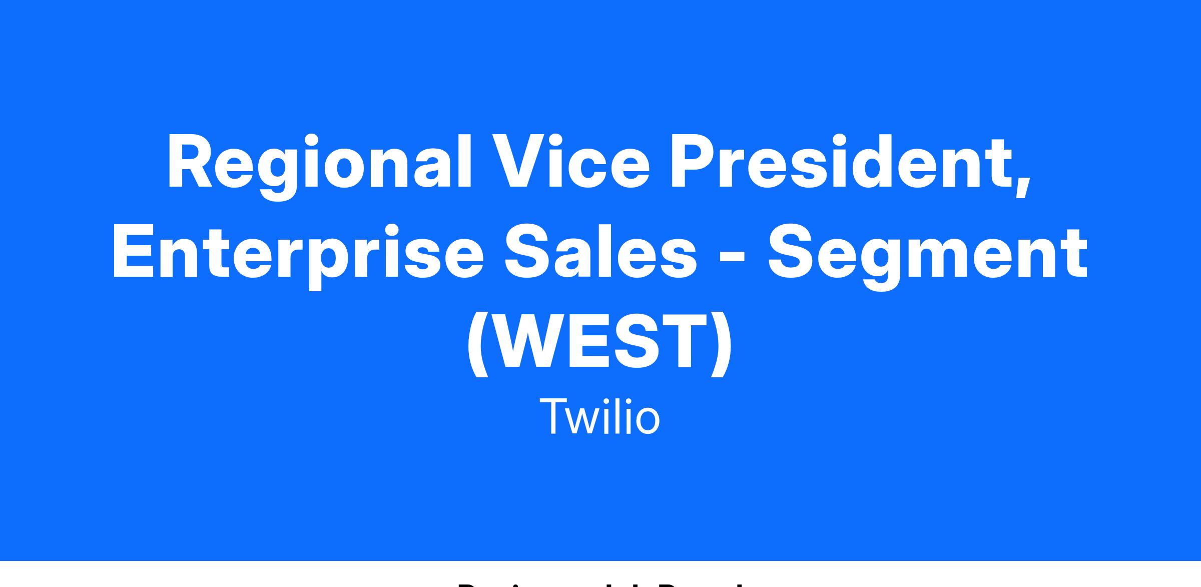 Join the team as our next Regional Vice President, Enterprise Sales on Twilio's Segment West Sales Team!