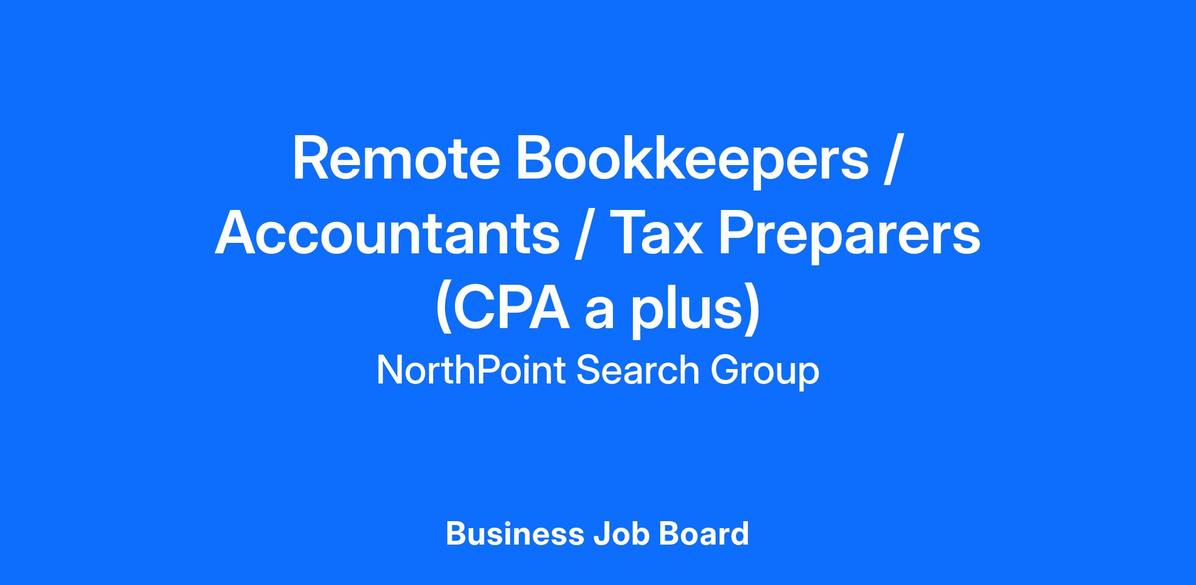 Remote Bookkeepers / Accountants / Tax Preparers (CPA a plus)