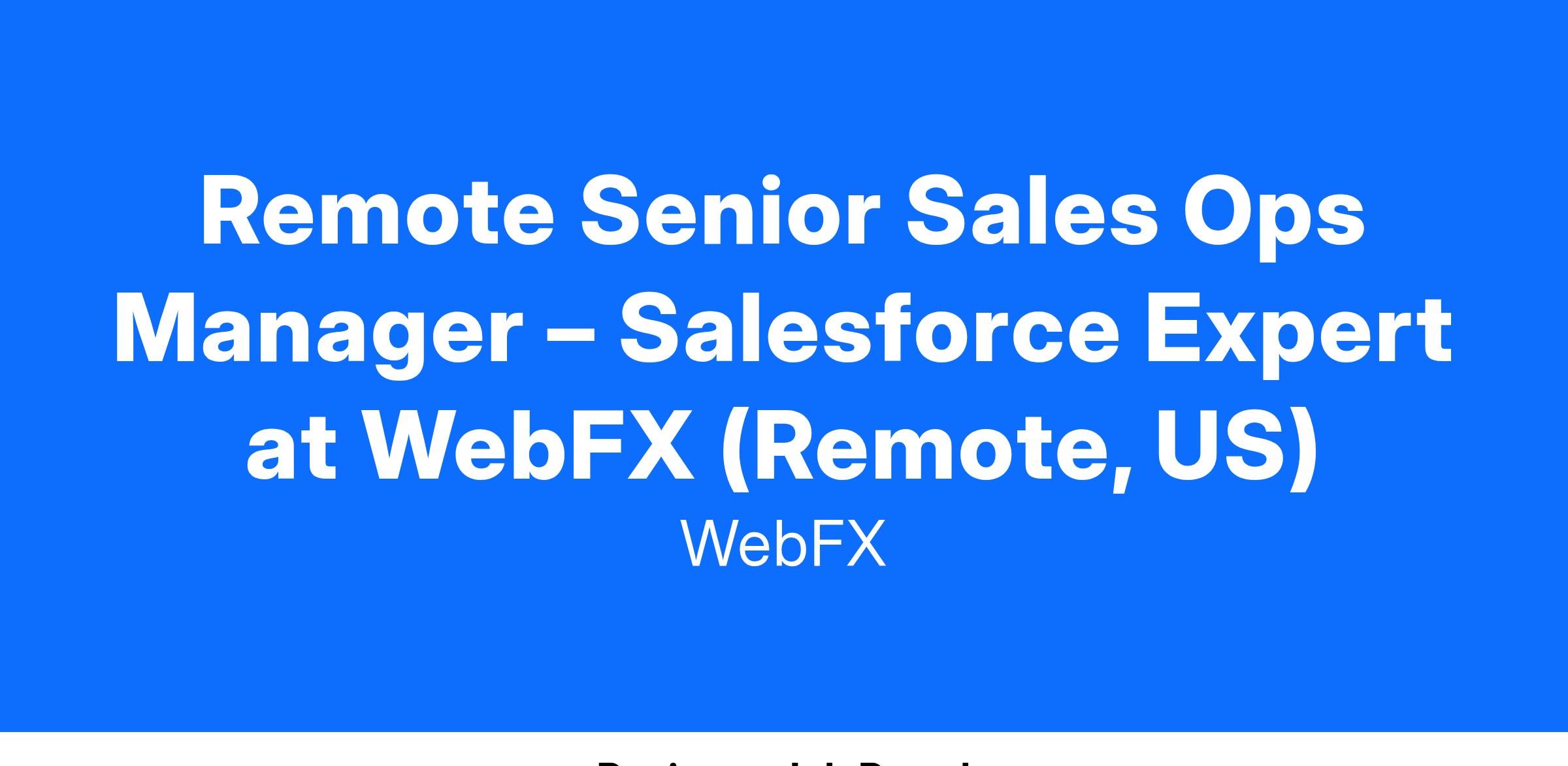 3-5+ years of experience in sales operations, with at least 3+ years specializing in Salesforce management and optimization.