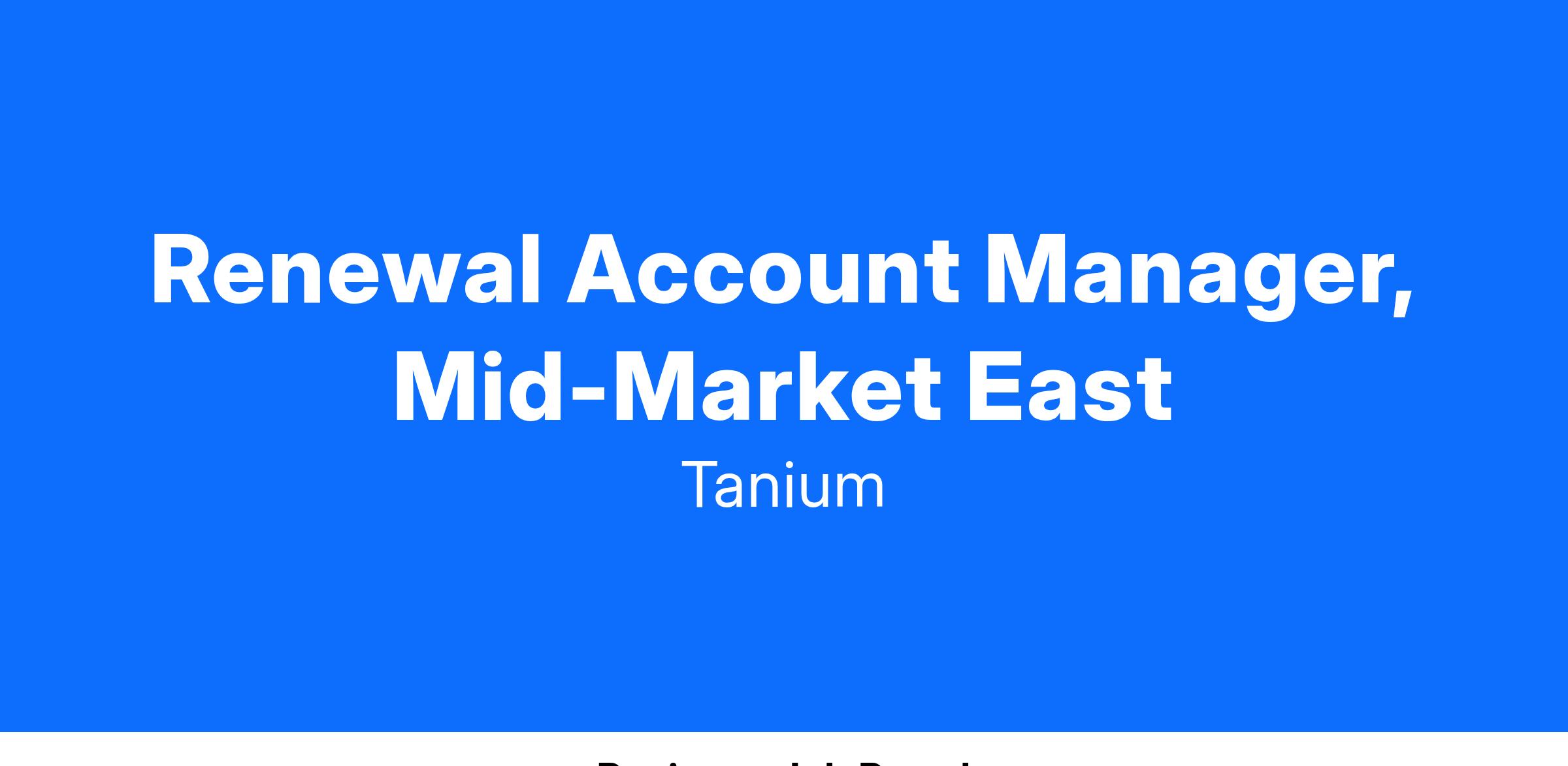Tanium is seeking a proactive and driven Renewal Account Manager to join our team. The ideal candidate will be responsible for driving renewal sales, fostering long-term relationships with clients, and ensuring overall customer satisfaction to promote retention and growth within our United States Mid-Market segment.