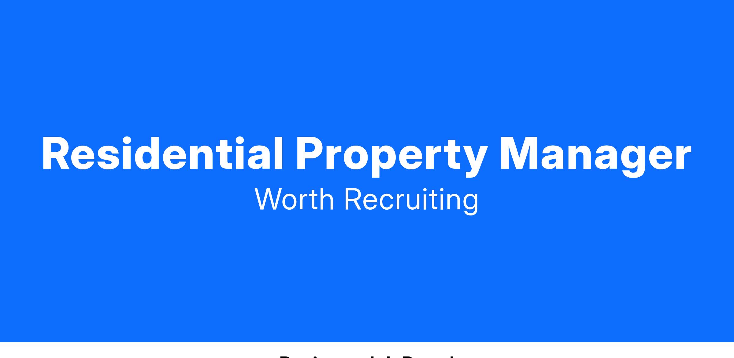Contact: If you are interested in this role as a Property Manager, please contact the Property Recruitment Team at Worth Recruiting