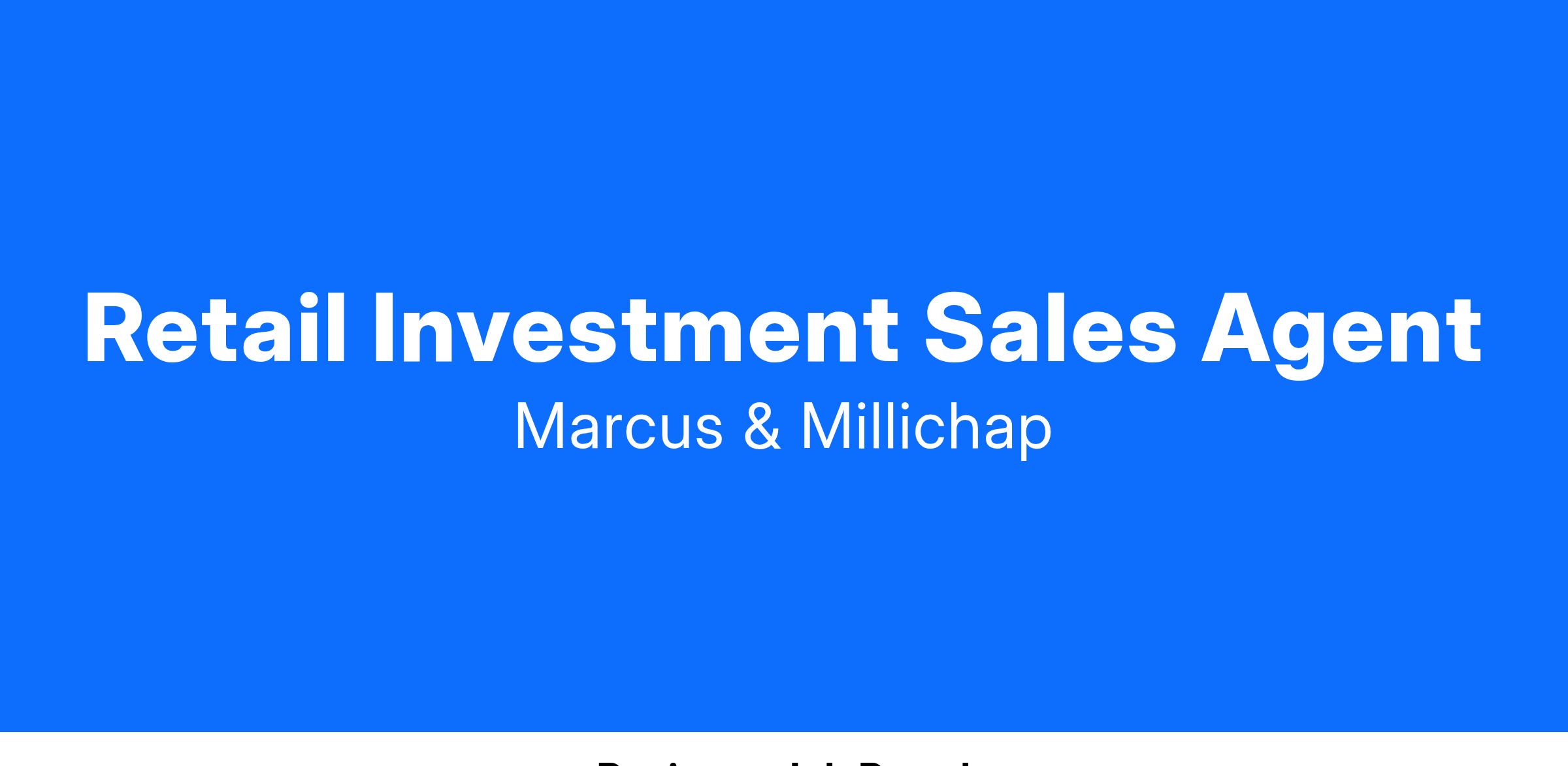 - Training & Mentorship Programs – Marcus & Millichap provides structured, industry-leading training programs tailored to your individual level of business, sales, and real estate experience. Our team-oriented environment enables newer agents to learn from influential, highly successful senior agents and managers.