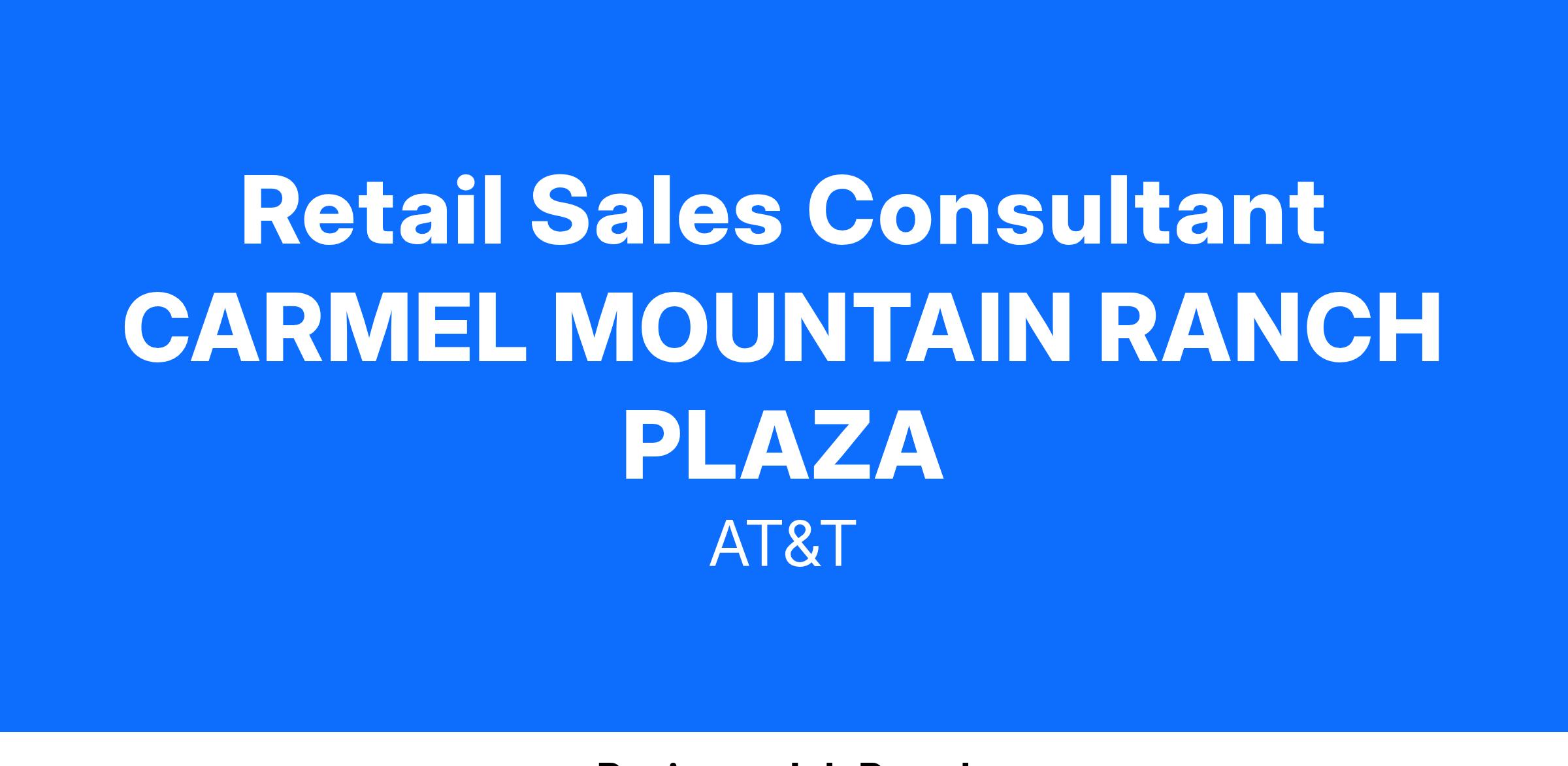 USA:CA:San Diego:11954 Carmel Mountain Rd:RET/RETWith our amazing wage opportunities, our average starting earnings per week begin at