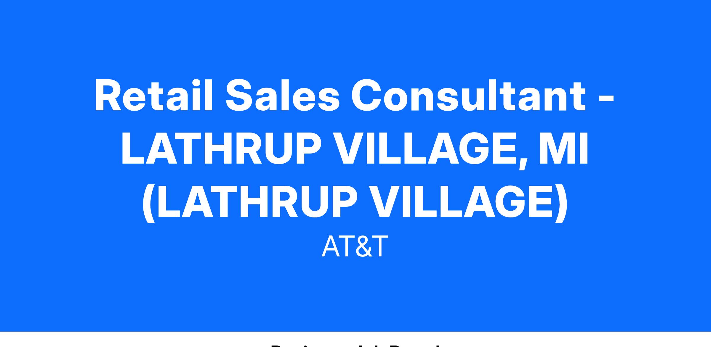 USA:MI:Lathrup Village:26820 Southfield Rd:RET/RETWith our amazing wage opportunities, our average starting earnings per week begin at