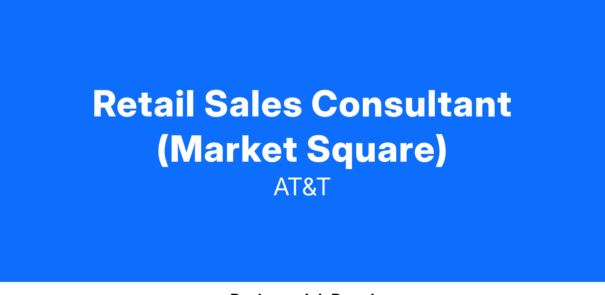 JobTitle : Retail Sales Consultant (Market Square) JOBKEYJOBCODE : 16000025 Wage Scale/Schedule/ Class/Level : Y6 Time on Assignment (TOA) : Residency : Time in Title (TNT) : Job Family : CS Union Affiliation : Mobility Orange (Districts 1, 2-13, 4, 7, 9) Region : MBLT GENERAL DUTIES :The functions listed below are representative of duties performed by this job title. Duties generally include but are not limited to the following: