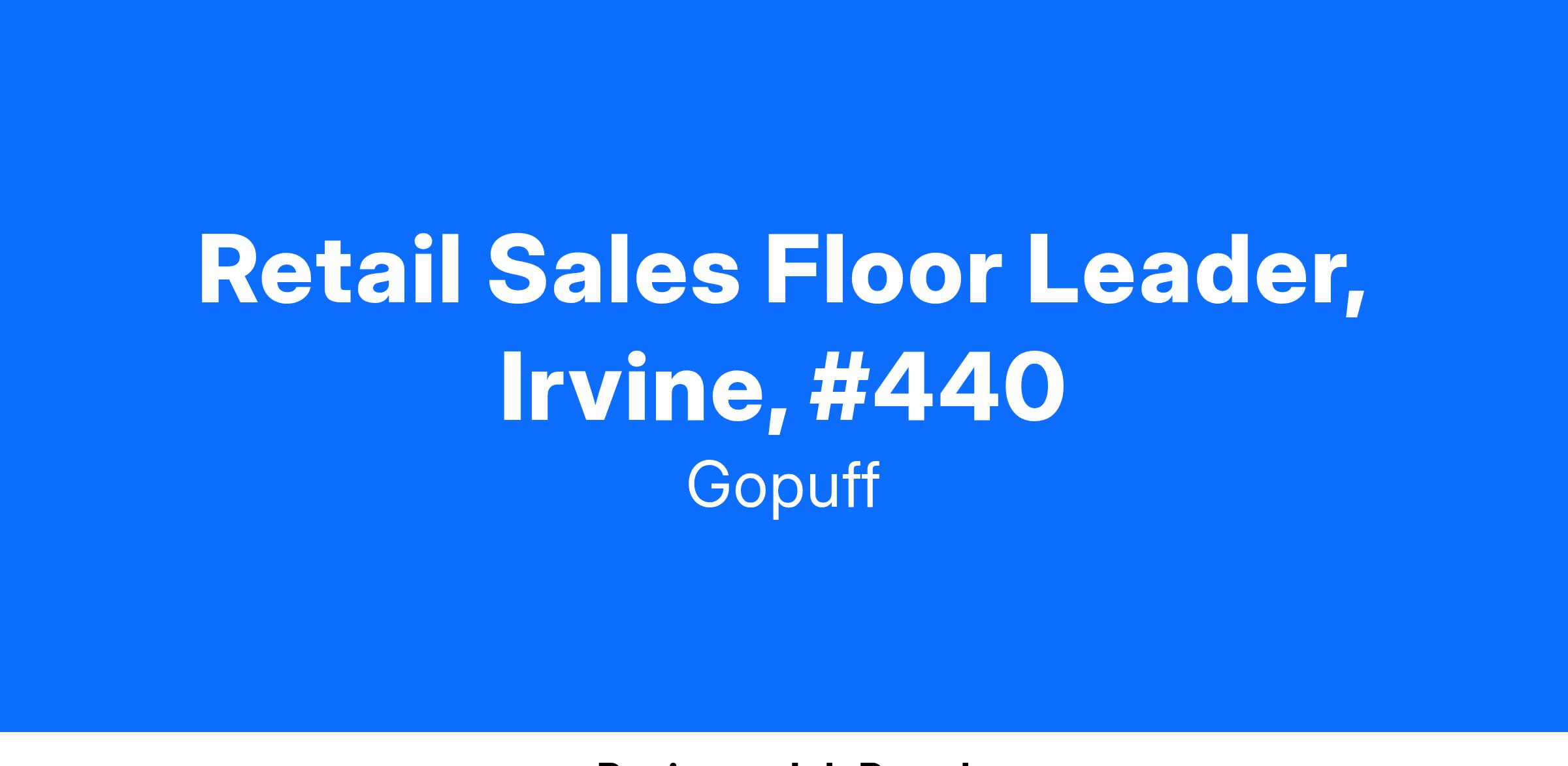 BevMo! by Gopuff is seeking a Sales Floor Leader for our Retail Operations team.As a Sales Floor Leader, you will support the Store Manager in creating an excellent customer experience while driving sales and delivering on business goals. Lead daily operations, including the motivation of the team to achieve store goals while providing an excellent customer experience. Help the Store Manager to analyze sales trends, and develop action plans to drive top line sales. Provide a strong leadership presence while enforcing all company policies and procedures, and ensuring compliance with regulatory requirements.